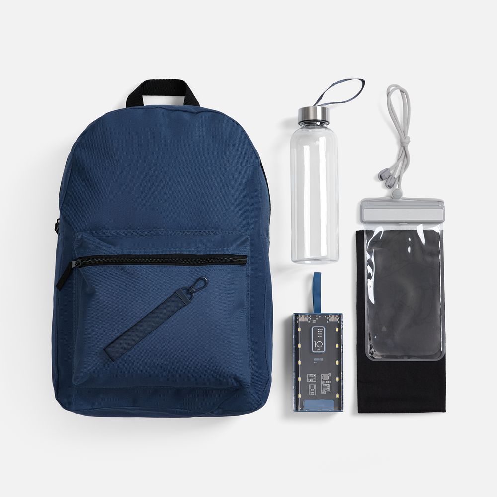 Набор Equipo — идеальный спутник в путешествиях! Стильная бандана защитит от солнца и ветра, практичная бутылка всегда будет под рукой. Водонепроницаемый чехол спасет гаджеты от непогоды, а мощный аккумулятор зарядит устройства в любой момент. Удобный рюкзак вместит все необходимое, а яркая ремувка добавит нотку индивидуальности и функциональности. Надежная компания всего самого необходимого для незабываемых и комфортных путешествий. Готовы исследовать мир без ограничений? С набором Equipo — легко!Емкость бутылки 500 мл.