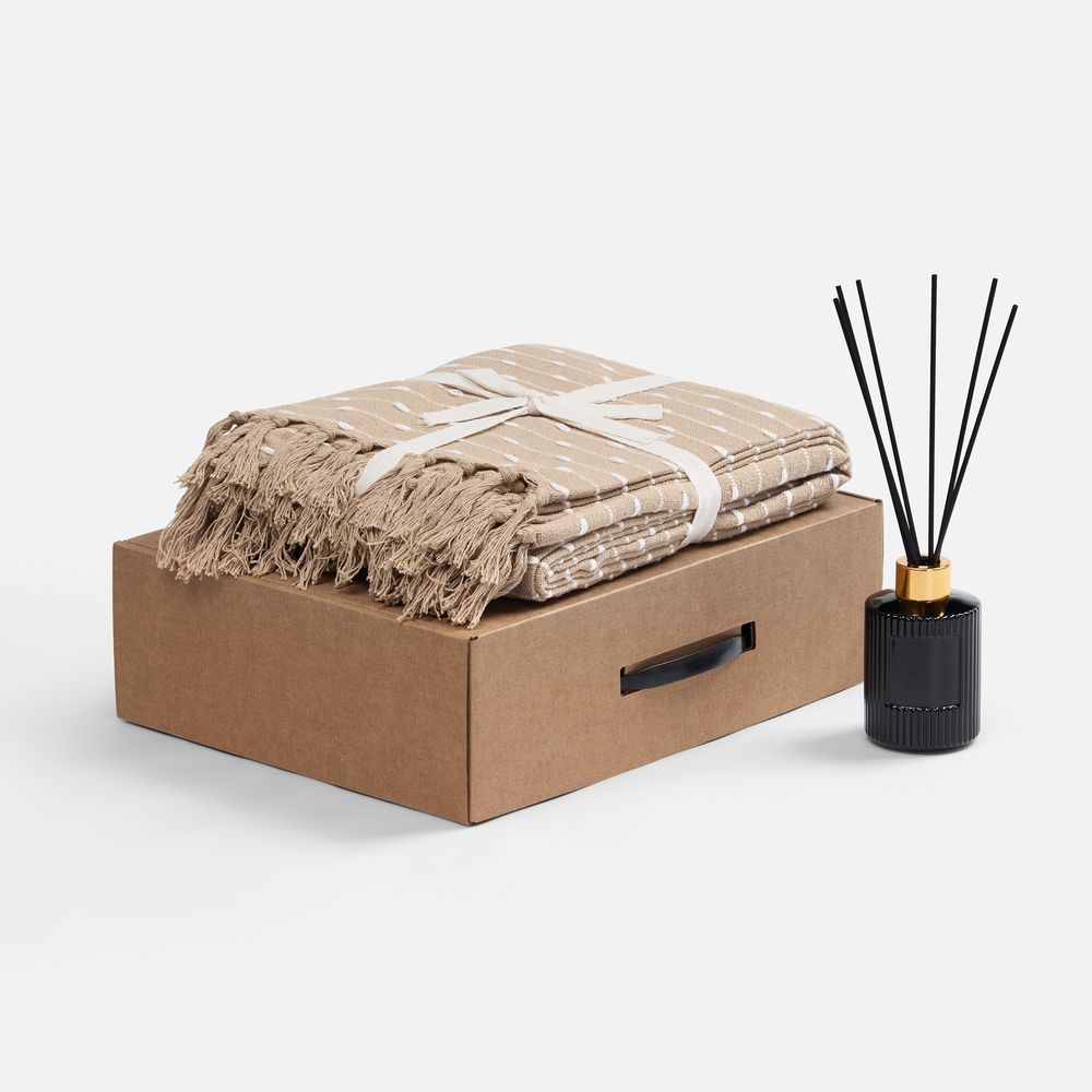 Уют, который ощущается каждой клеточкой тела. Набор Aliento — это мягкий плед и диффузор с гармоничным ароматом, созданные для того, чтобы забыть о суете и насладиться настоящим спокойствием. Элегантность, комфорт и ароматерапия в одном наборе — идеальный подарок для тех, кто ценит качество жизни.Емкость диффузора 120 мл. Ароматической жидкости хватит примерно на 5 месяцев использования.Верхние ноты: зеленые листья, грейпфрут, мускатный шалфей. Средние ноты: эвкалипт, мята, кедр. Базовые ноты: пачули, ветивер, мускус.