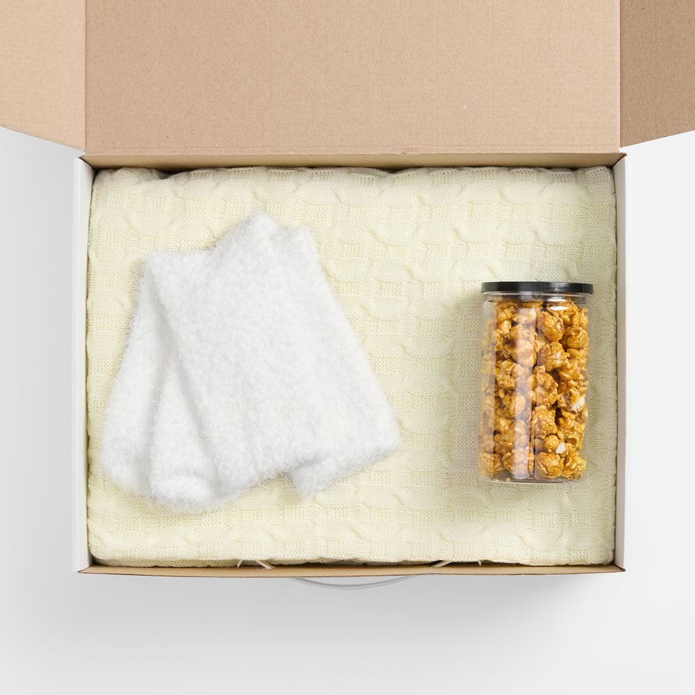 Mon Plaisir — это ода удовольствиям и тихим радостям жизни. Чтобы их было больше, стоит ценить эстетику и комфорт во всем, что окружает, делиться теплом и самим создавать приятные мгновения. Нотка хрустящего удовольствия в сладком попкорне, обволакивающее тепло пледа с геометрическим узором и мягких пушистых носков — идеальное комбо для уютного вечера и великолепного времяпрепровождения.