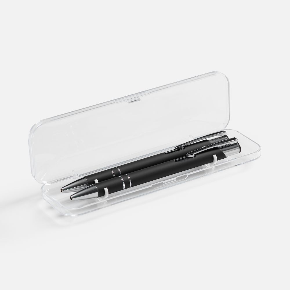 Набор из двух ручек Keskus с покрытием софт-тач в прозрачном пластиковом футляре.Механизм ручки: нажимной.Корпус ручки разбирается. Стержень легко заменить.Стержень с масляными синими чернилами.Длина линии письма: 1000 м.Поставляется в подарочной упаковке.Гравировка по цветным частям корпуса получается серебристой.
