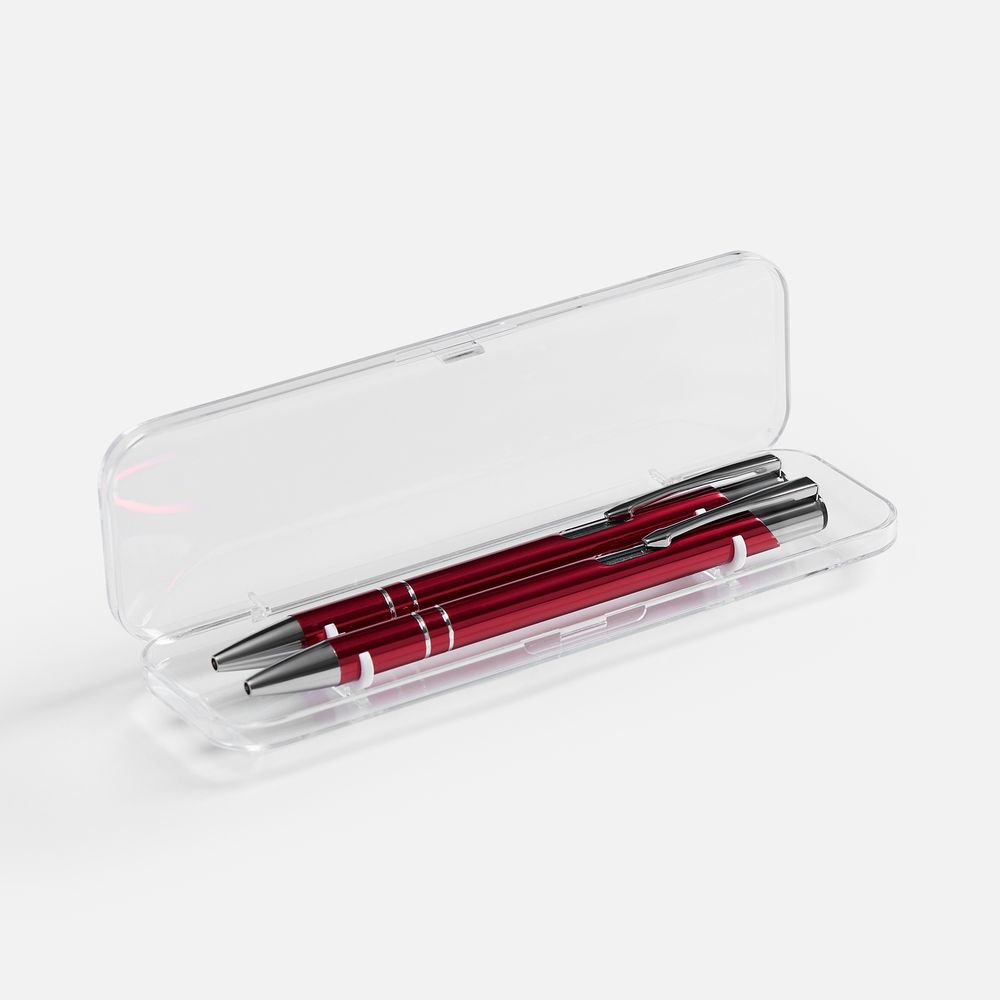 Набор из двух глянцевых ручек Keskus в прозрачном пластиковом футляре.Механизм ручки: нажимной.Корпус ручки разбирается. Стержень легко заменить.Стержень с масляными синими чернилами.Длина линии письма: 1000 м.Поставляется в пластиковом прозрачном футляре.