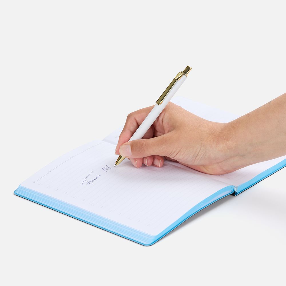 Шариковая ручка с покрытием софт-тач и золотистыми деталями. Клип оригинальной формы.Механизм ручки: нажимной.Корпус ручки разбирается, стержень легко заменить.Стержень с синими чернилами.Длина линии письма: 700 м.Поставляется в индивидуальном полиэтиленовом пакетике.Гравировка по цветным частям корпуса получается серебристой.