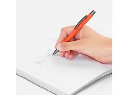 Лаконичный корпус с покрытием софт-тач и стильными матовыми деталями в приглушенном темно-сером оттенке.Механизм ручки: нажимной.Корпус ручки разбирается, стержень можно заменить.Стержень с масляными синими чернилами.Длина линии письма: 1000 м.Гравировка по цветным частям корпуса получается серебристой.