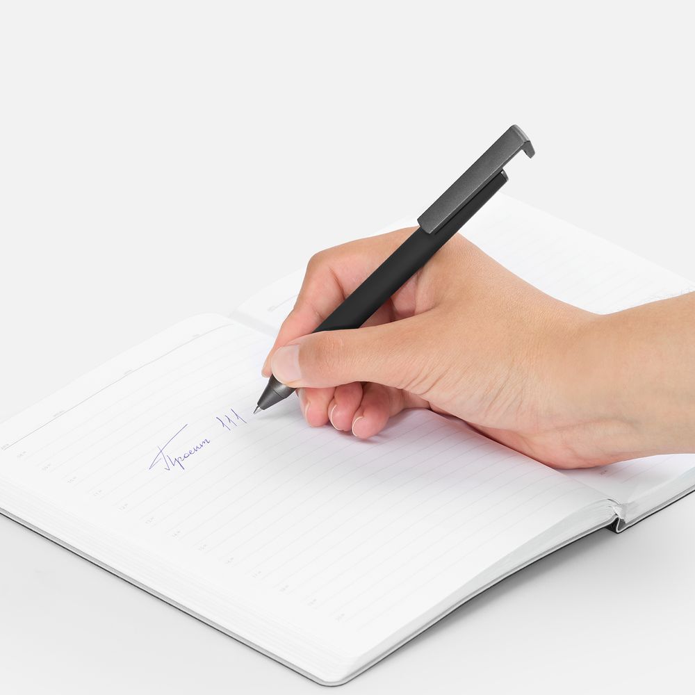 Ручка шариковая Standic с подставкой для телефона, черная