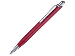 Металлическая ручка с матовым корпусом и хромированными деталями.Механизм ручки: нажимной.Корпус ручки разбирается. Стержень легко заменить.Стержень с синими чернилами.Длина линии письма: 800 м.Гравировка по цветным частям корпуса получается серой.