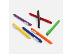 Ручка из глянцевого пластика с белым клипом.Механизм ручки: нажимной.Корпус ручки разбирается, стержень легко заменить.Стержень с синими чернилами.Длина линии письма: 500 м.