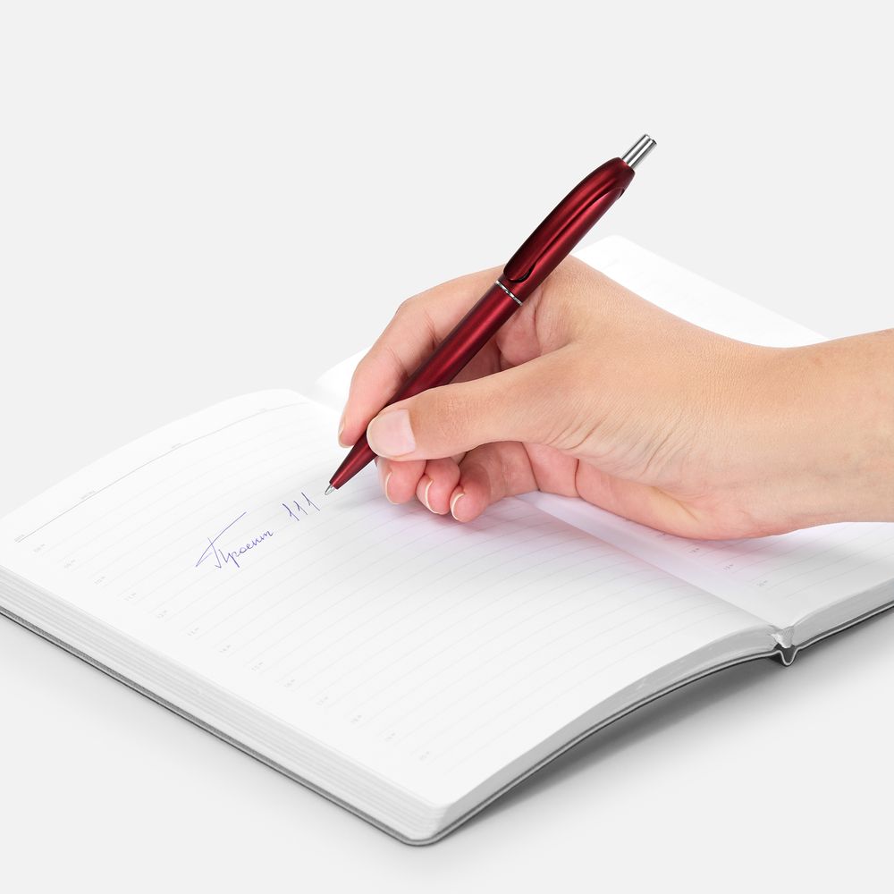Шариковая пластиковая ручка в корпусе с эффектом «металлик» и серебристыми деталями. Приятная округлая форма клипа добавляет ручке плавности и объема.Механизм ручки: нажимной;Корпус ручки разбирается, стержень легко заменить;Стержень с синими чернилами.Длина линии письма: 700 м.Поставляется в индивидуальном полиэтиленовом пакетике.