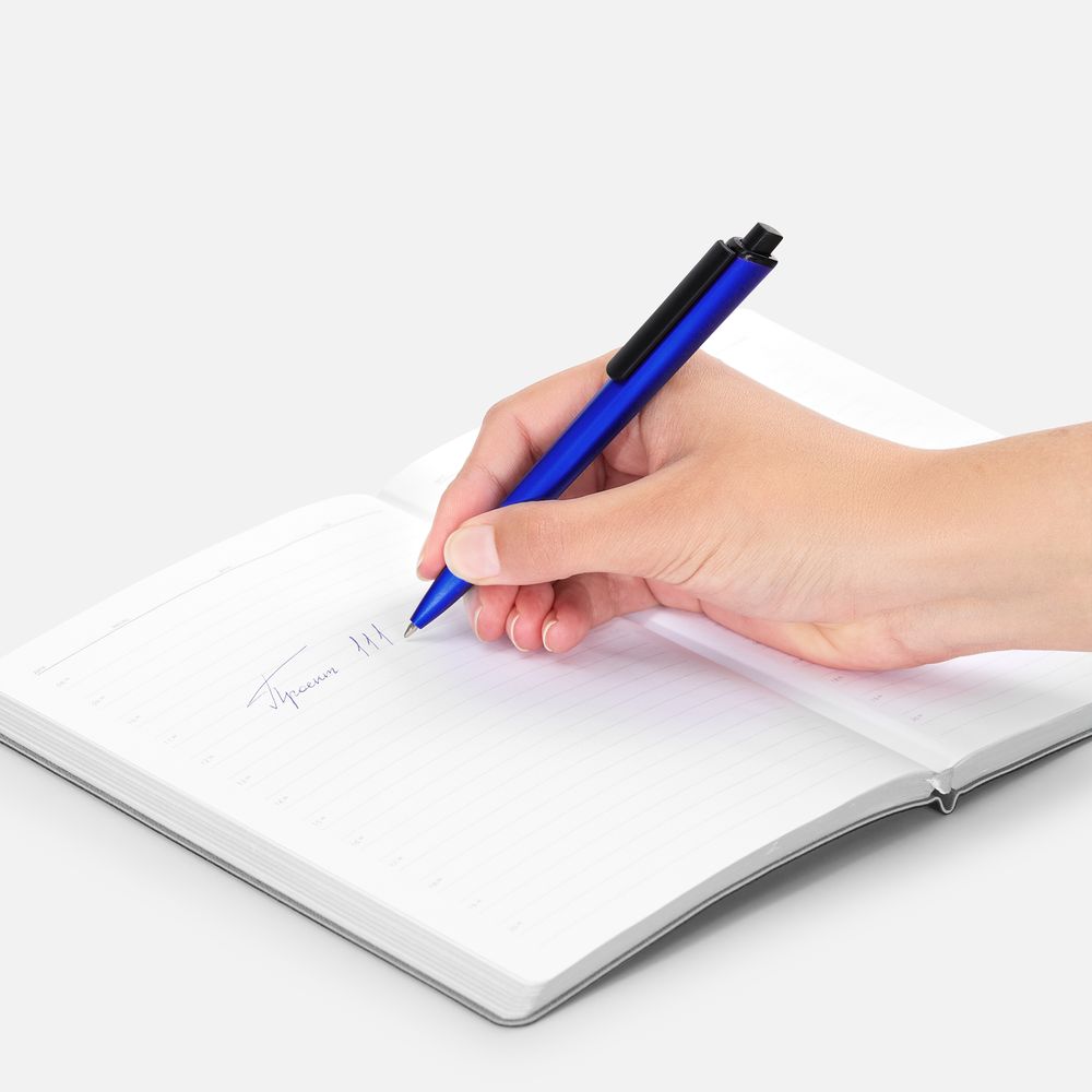 Пластиковая ручка с четырехгранным корпусом.Механизм ручки: нажимной.Корпус ручки разбирается. Замена стержня требует особых навыков.Стержень с синими чернилами.Длина линии письма: 700 м.