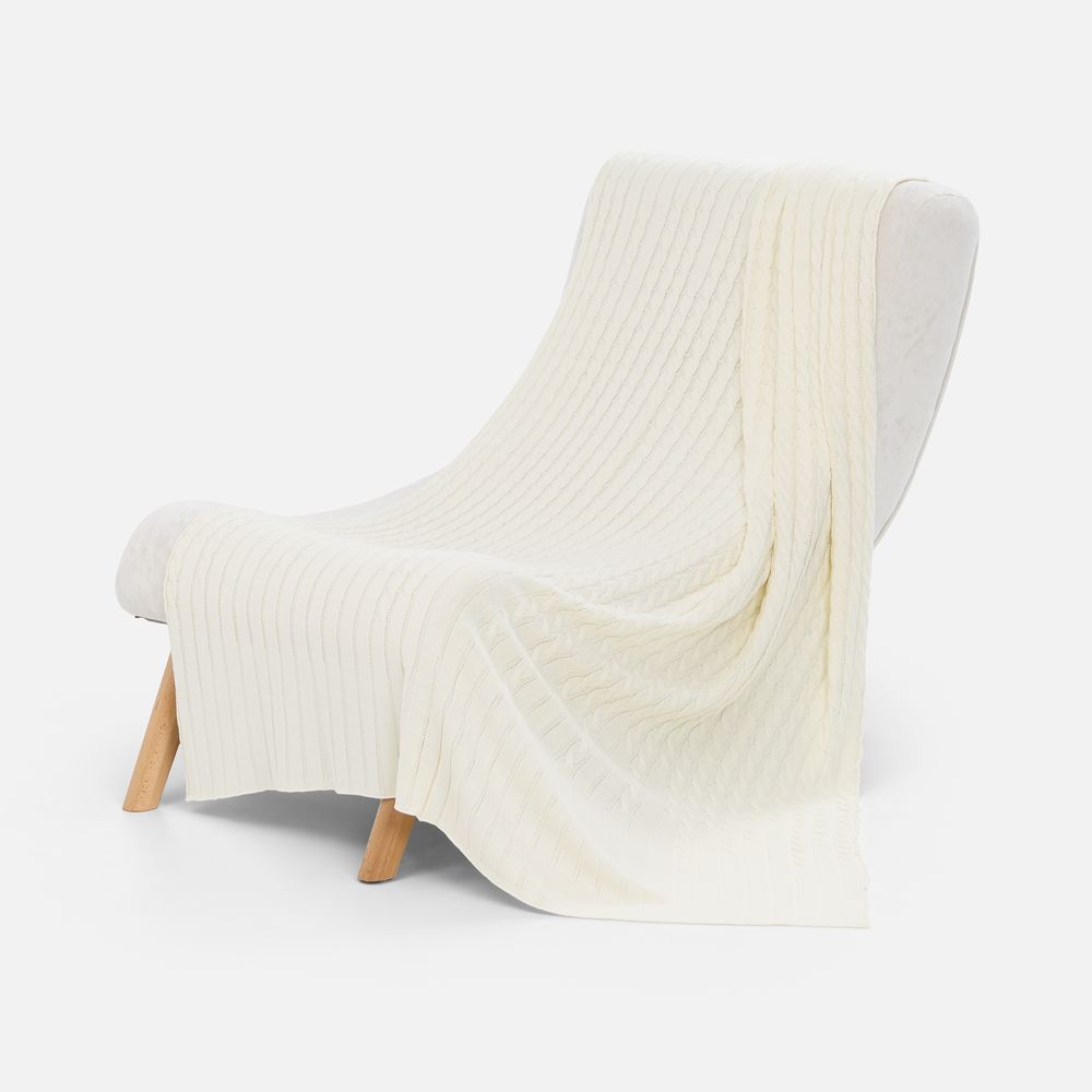 Уютный плед со слегка обновленным классическим узором: фактурные косы разной длины плавно перетекают в ненавязчивые полосы и обратно. Tressa притягивает внимание и напоминает о простой красоте привычных образов. Добавит спокойного шика в современный интерьер спальни или гостиной, окутает заботой и теплом.Акриловый плед фактурной вязки.