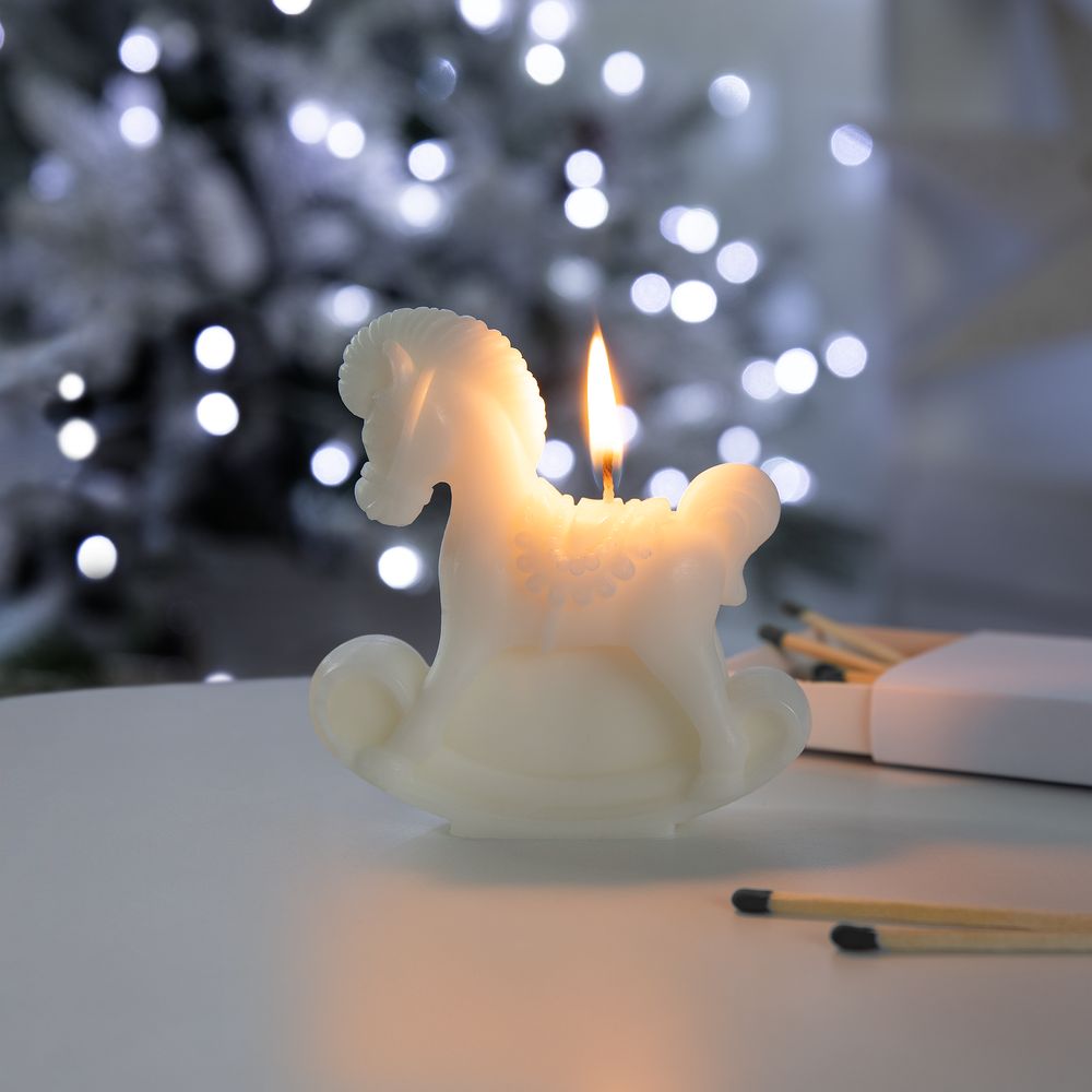 Очаровательная свеча в виде милой игрушечной лошадки с легкостью перенесет в мир светлого волшебства и беззаботного детства. Она станет прекрасным дополнением к основному новогоднему подарку, добавив ему очарования и непринужденности. Ее мягкий свет создаст теплую атмосферу и наполнит пространство магией праздника. Яркие цвета и наивный ретростиль поднимут настроение и добавят радости в любой интерьер.Свеча в форме лошади станет маленьким талисманом и символом удачи — именно в такой компании приятно встретить Новый год!Время горения примерно 3 часа.Поставляется в полиэтиленовом пакете.Условия перевозки: при тиражном заказе рекомендуется обрешетка.