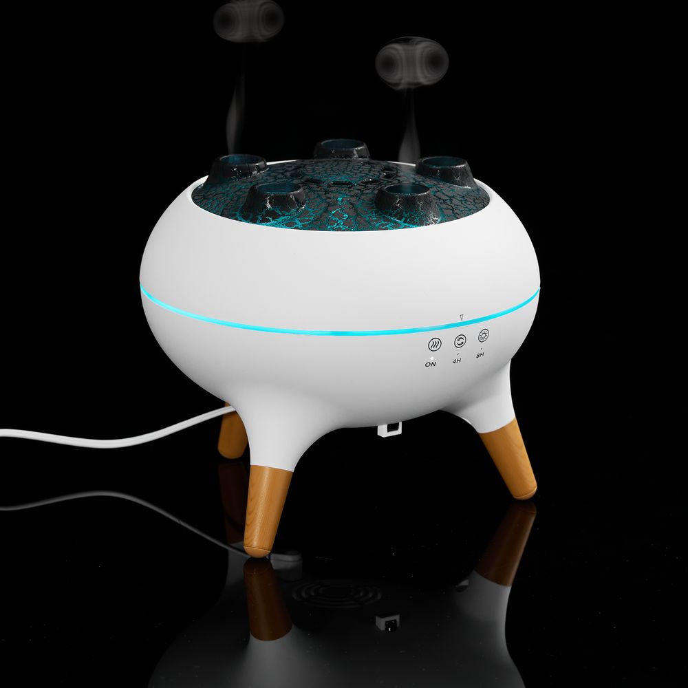 Ультразвуковой увлажнитель Cloudini не только насыщает влагой воздух в помещении, создавая комфортную и здоровую атмосферу вокруг, но и моментально притягивает заинтересованные взгляды и удивляет функционалом. Помимо стандартных струек пара посередине крышки, Cloudini умеет выпускать маленькие облачка влажного воздуха из 5 отверстий по окружности поочередно или динамически — в такт музыке. Устройство реагирует на звуковые колебания и выстраивает интенсивность распыления в зависимости от мелодии.В воду можно добавить ароматический раствор на водной основе или несколько капель эфирного масла, что поможет дополнительно расслабиться перед сном или лучше сконцентрироваться в течение рабочего дня. Увлажнение и ароматизация воздухаРазноцветная подсветкаТаймерЕмкость 250 млЗапаса воды в резервуаре хватает примерно на 6 часов работыПотребляемая мощность 5 ВтРабочее напряжение/ток: 24 В, 650 мАРаботает при питании от сетиАдаптер питания в комплектеПоставляется в индивидуальной упаковке.