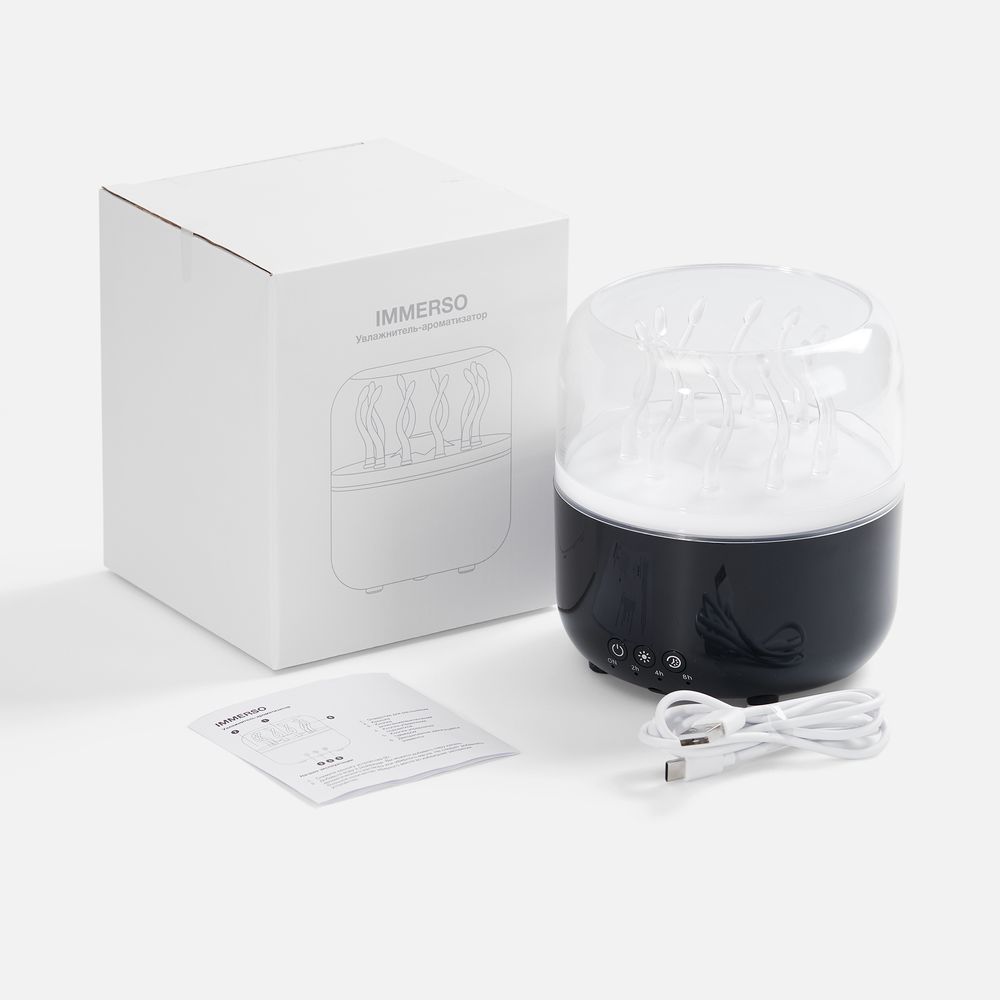 Ультразвуковой увлажнитель Immerso насыщает влагой воздух в помещении, создавая комфортную и здоровую атмосферу вокруг.Помимо основного функционала Immerso является необычным примером интерьера, способным моментально притянуть заинтересованные взгляды. Декоративные пластиковые элементы устройства напоминают щупальца обитателей морских глубин. Наблюдение за их движением расслабляет и успокаивает. В воду можно добавить ароматический раствор на водной основе или несколько капель эфирного масла, что поможет дополнительно расслабиться перед сном или лучше сконцентрироваться в течение рабочего дня. Увлажнение и ароматизация воздухаРазноцветная подсветкаТаймерЕмкость 280 млЗапаса воды в резервуаре хватает примерно на 6 часов работыРабочее напряжение/ток: 5 В, 2 АРаботает при подключении к источнику питанияКабель USB Type-C в комплектеПоставляется в индивидуальной упаковке.