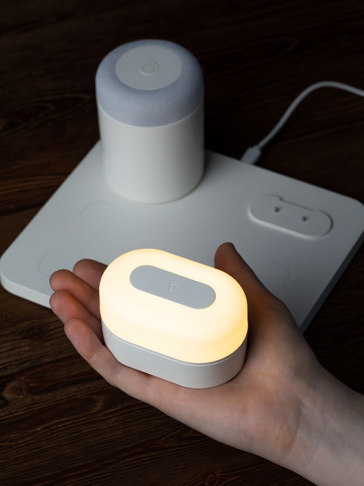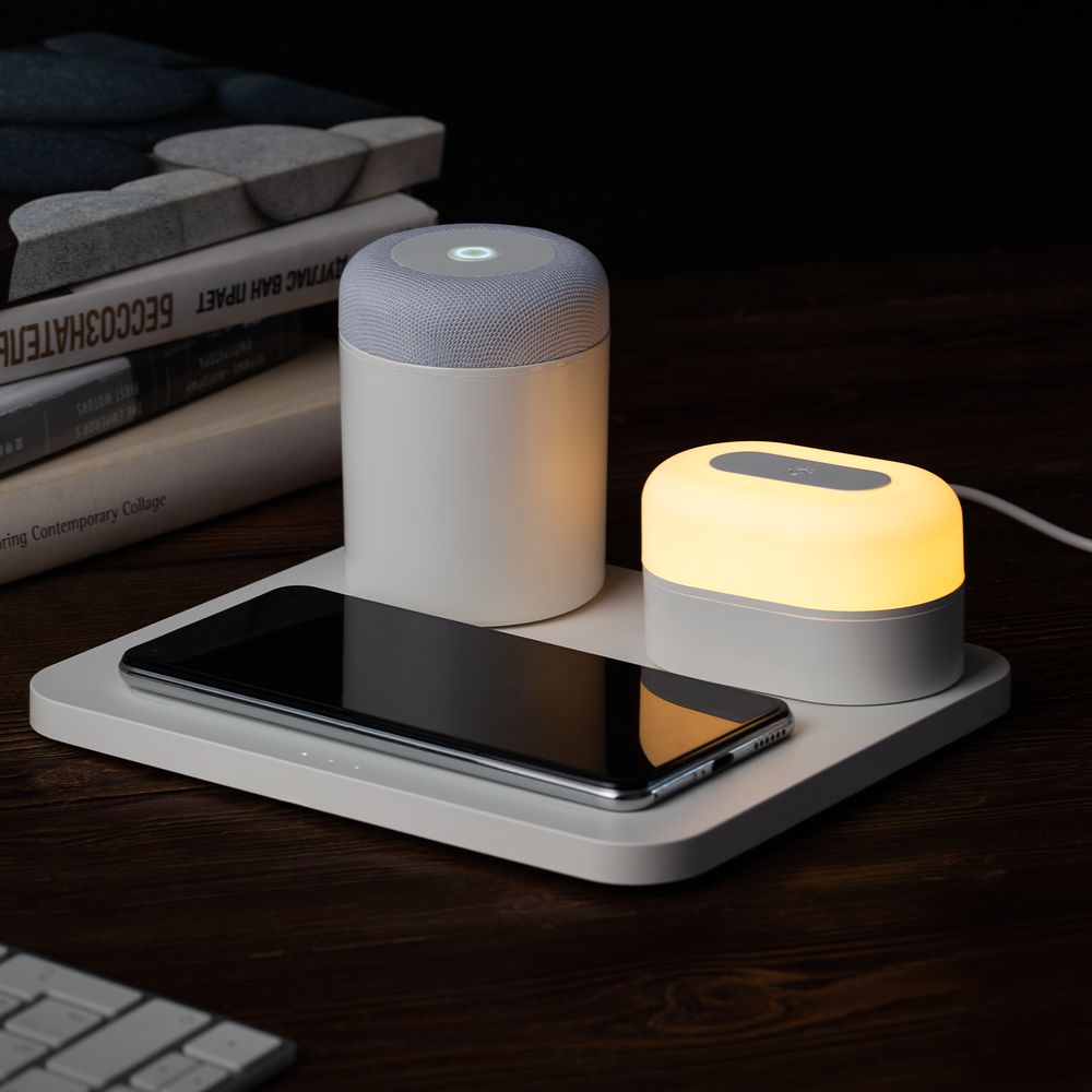 Станция беспроводной зарядки с колонкой и ночником Trilogy, белая