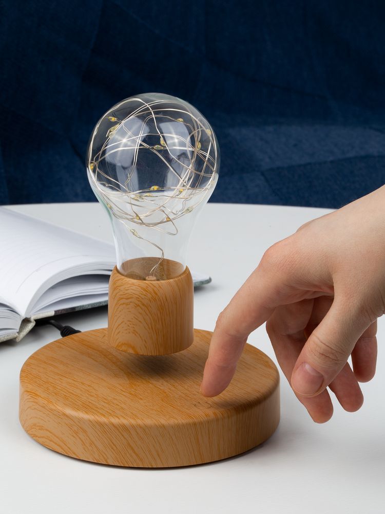 Левитирующая лампа FireFly Lights сочетает в себе элегантный дизайн и инновационные разработки современных технологов. Благодаря действию электромагнитного поля лампа завораживающе парит в воздухе, мгновенно притягивая к себе заинтересованные взгляды. В офисе или дома левитирующая лампа может стать прекрасным антистрессом: ее неспешное вращение вдоль своей оси легко успокаивает, позволяя ненадолго отвлечься от повседневных проблем и стрессовых ситуаций.Зарядное устройство лампы и подставка, создающая электромагнитное поле, полностью бесшумны и не раздражают гулом электричества. Лампа прекрасно вписывается в любой интерьер, будь то открытое пространство большого офиса, кабинет руководителя или собственная квартира. Вход: 12 В, 2 AЯркость светового потока: 120 лм 20 светодиодов со световым потоком 6 лмКоэффициент цветопередачи: 80 максТемпература освещения: 2700KСрок службы лампы 50 000 чСветодиодный ток