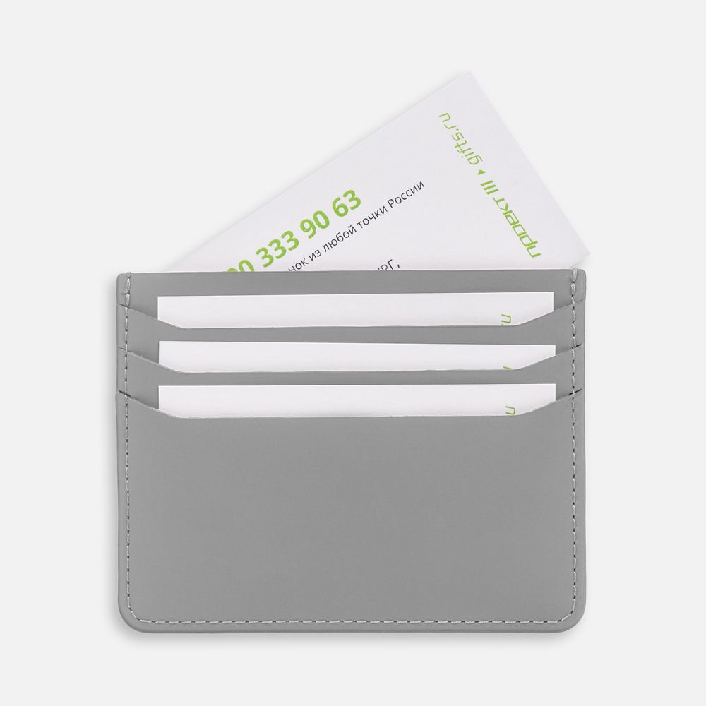 Чехол с 4 отделениями для кредитных карт и одним — для сложенных купюр.Упакован в конверт из ПВХ.