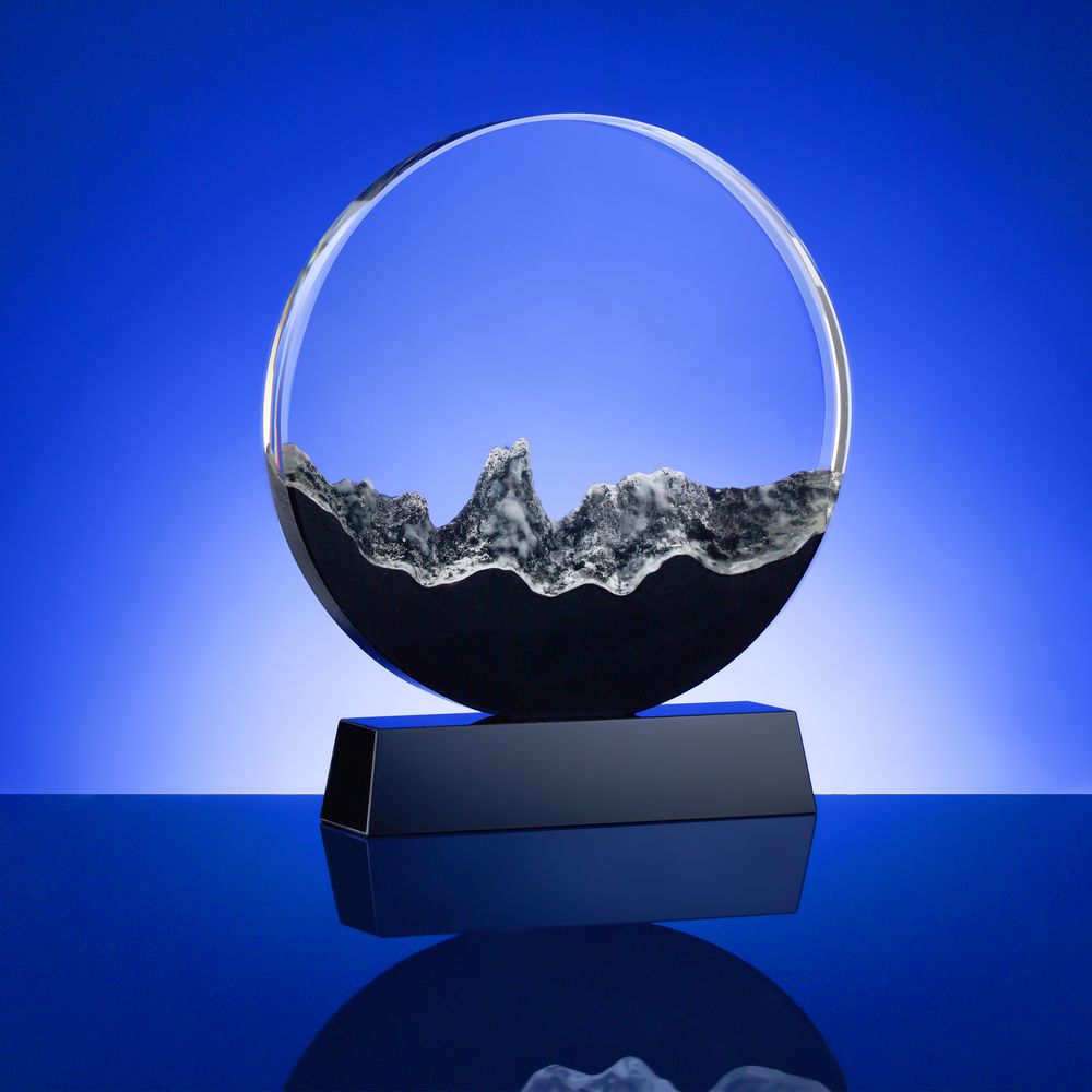 Стела Ridgeway — это уникальное сочетание современного дизайна, высококачественных материалов и особых технологий. Эта награда напомнит об уже пройденном пути и вдохновит на новые свершения. Особенно придется по вкусу работникам горной промышленности или геодезистам.Прозрачная круглая часть и черное основание стелы изготовлены из премиального стекла К9, в основе которого лежит оптическое боросиликатное стекло. Эту марку стекла отличает низкий процент посторонних включений, высокий показатель преломления и высокая прозрачность — идеальные качества для изготовления наград премиального уровня. Нижняя часть стелы выполнена при помощи каменного литья из смеси специальной смолы с кварцевым черным и белым песком, тщательно отшлифованной после спекания при низкой температуре. Такой технологический прием создает завораживающую картинку внутри самой стелы, напоминающую горный хребет: яркий символ как преодоления, так и умиротворения.Гора не кажется неприступной, если смотреть с ее вершины.Поставляется в подарочной коробке.