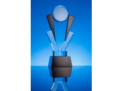 Стела изготовлена из стекла К9, в основе которого лежит оптическое боросиликатное стекло. Эту марку стекла отличает низкий процент посторонних включений, высокий показатель преломления и высокая прозрачность — идеальные качества для изготовления наград премиального уровня.