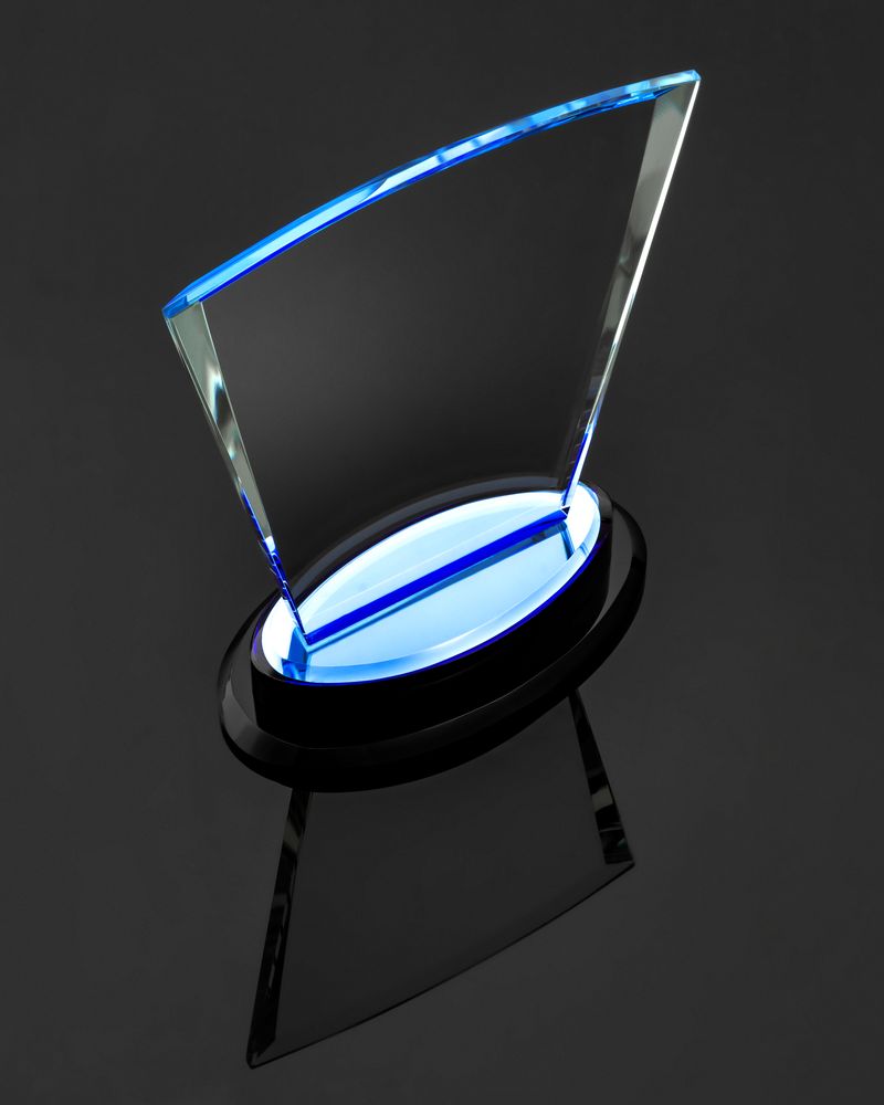 Стела изготовлена из стекла К9, в основе которого лежит оптическое боросиликатное стекло. Эту марку стекла отличает низкий процент посторонних включений, высокий показатель преломления и высокая прозрачность — идеальные качества для изготовления наград премиального уровня.Дополнительный слой синего стекла на основании придает всей стеле легкий оттенок.Основание награды выполнено из стекла.Стела изготовлена из хрусталя К9, в основе которого лежит оптическое боросиликатное стекло. Эту марку хрусталя отличает низкий процент посторонних включений, высокий показатель преломления и высокая прозрачность — идеальные качества для изготовления наград премиального уровня.Дополнительный слой синего стекла на основании придает всей стеле легкий оттенок.