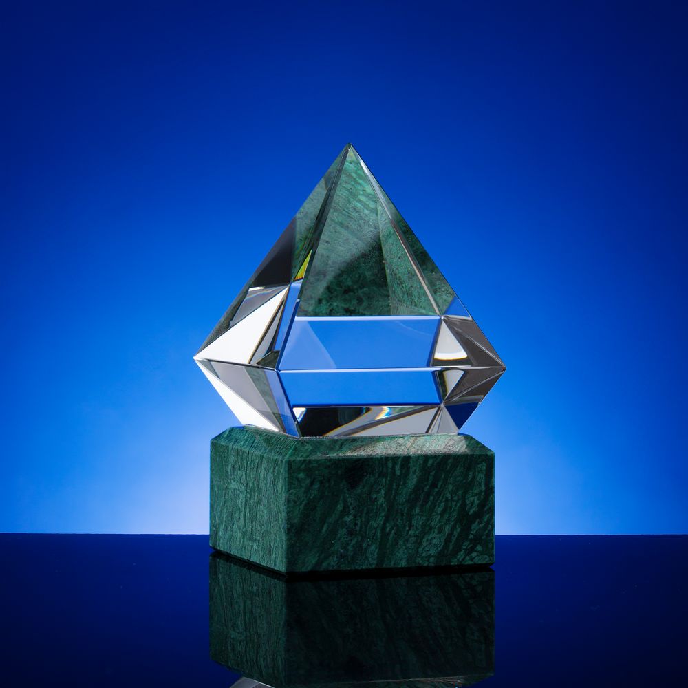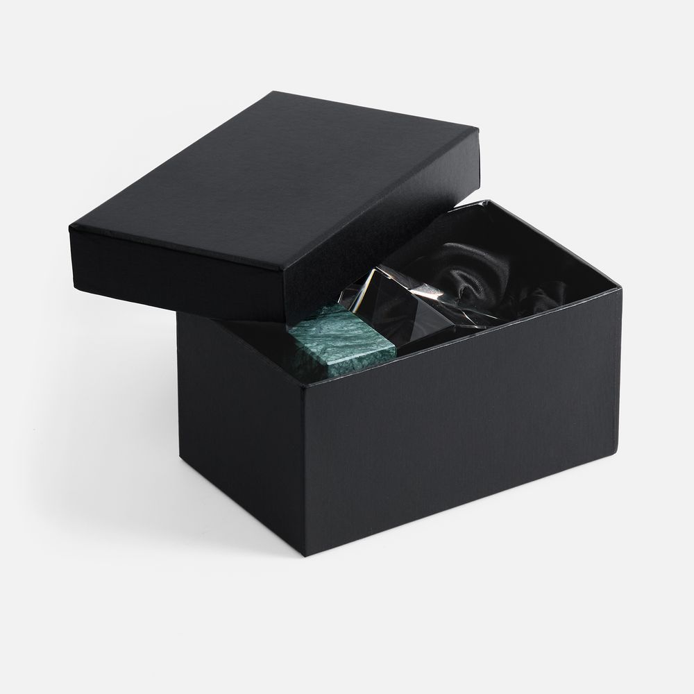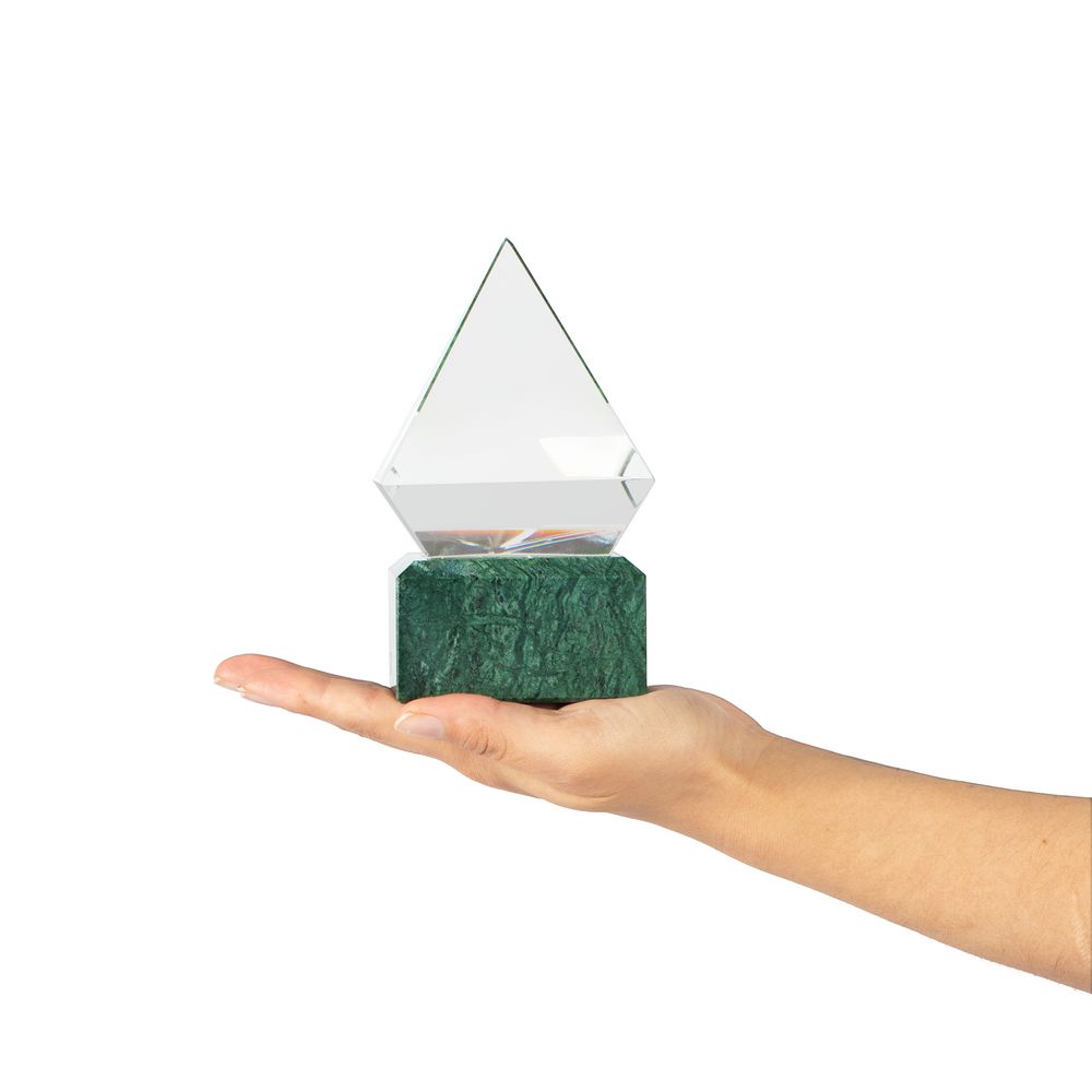 Награда Picco напоминает настоящий алмаз — яркое воплощение самых ценных мгновений и достижений высочайшего уровня. Она создана для тех, чье дело способно сверкать разными гранями, неизменно впечатляя и вдохновляя окружающих. Эффектный камень серпентин благородного оттенка добавляет награде монументальности, а отражения в гранях стеклянного кристалла создают завораживающий визуальный эффект. Награда Picco подчеркнет грани успеха и таланта получателя, а также вдохновит на покорение новых вершин. Благодаря своей форме и исполнению награда Picco займет достойное место в коллекции и украсит любой интерьер.Навершие выполнено из стекла К9, в основе которого лежит оптическое боросиликатное стекло. Эту марку стекла отличает низкий процент посторонних включений, высокий показатель преломления и высокая прозрачность — идеальные качества для изготовления наград премиального уровня.Picco. Вершина успеха и изысканности!Поставляется в подарочной коробке.