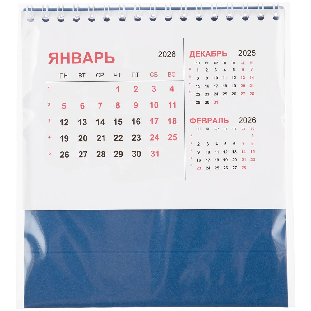 Компактный настольный календарь с датировкой на 2026 год. Основа выполнена из дизайнерской бумаги Macedonia плотностью 260 г/м².Численник изготовлен из мелованной бумаги плотностью 130 г/м².Производственный календарь на 2026 год подготовлен на основе положений о выходных днях ТК РФ, действующих на момент разработки макета. Постановлением Правительства РФ производственный календарь может быть скорректирован.