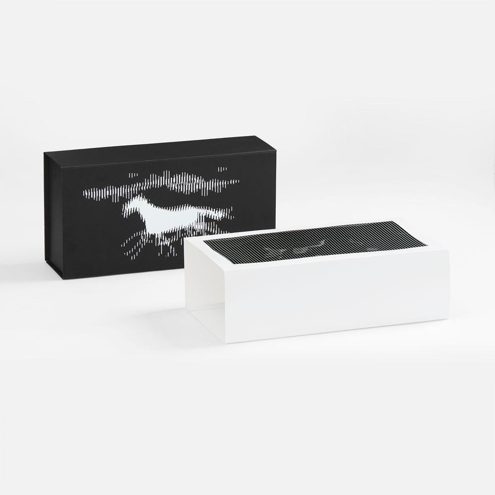«Динамика успеха» — интерактивная упаковка, дизайн которой говорит сам за себя. Она как бы напоминает: настоящий успех начинается с первого шага — и продолжается в каждом следующем. При открытии коробки изображение лошади словно оживает: стоит отодвинуть шубер — и конь срывается в бег. Интерактивный элемент усиливает эмоциональный отклик и впечатление от вручения подарка. Этот мощный и динамичный визуальный прием превращает обычную упаковку в выразительный образ — метафору развития, энергии и преодоления дистанции.«Динамика успеха». Импульс для будущих достижений.