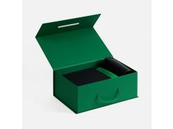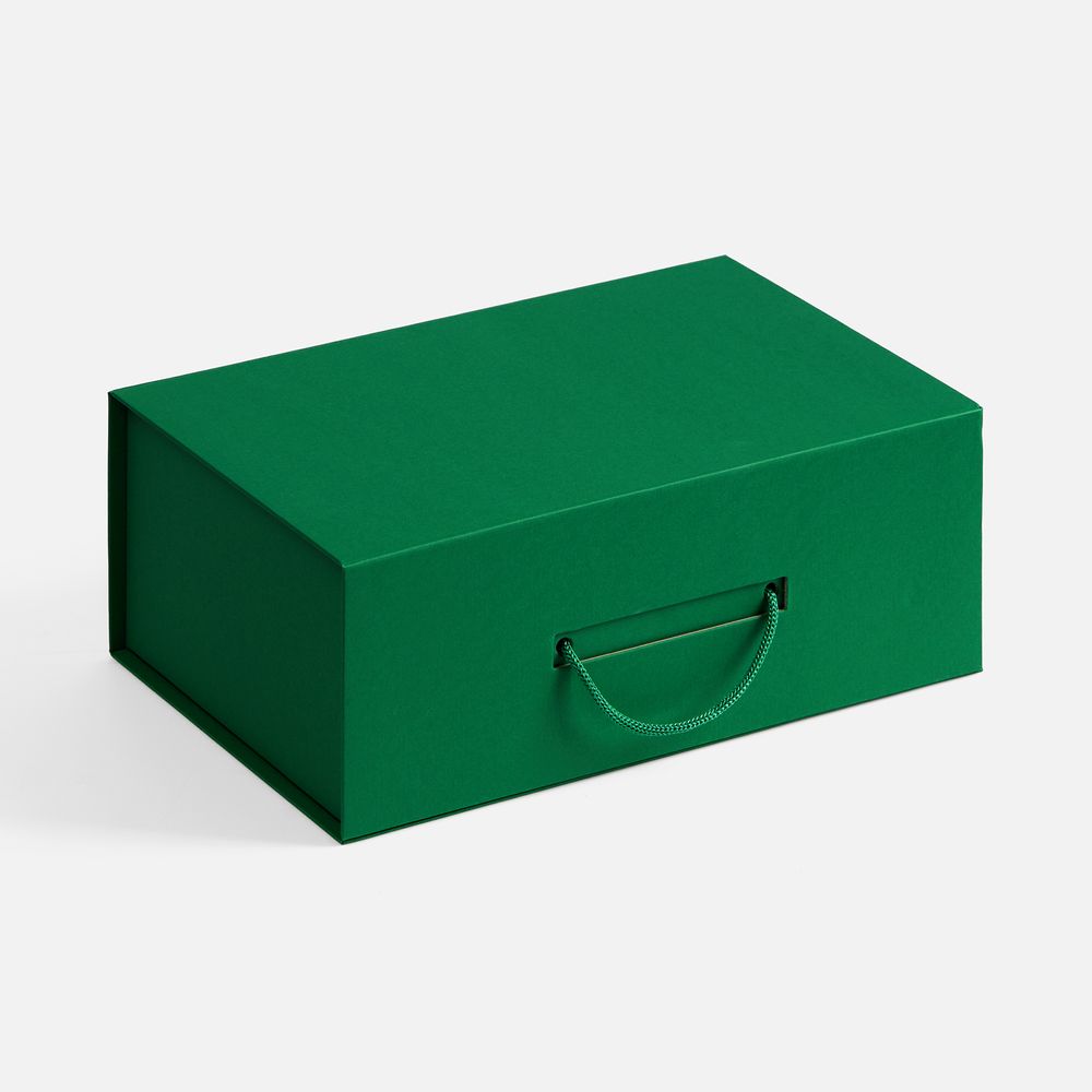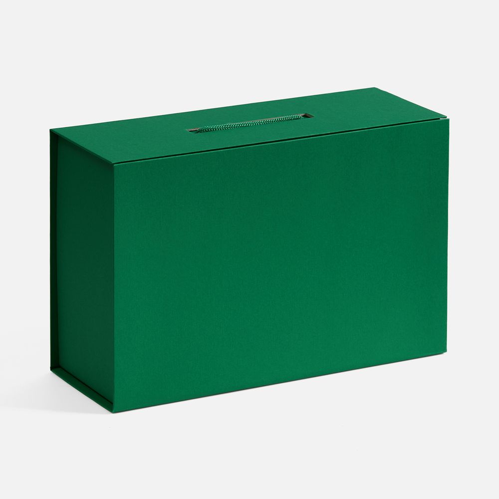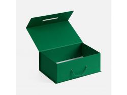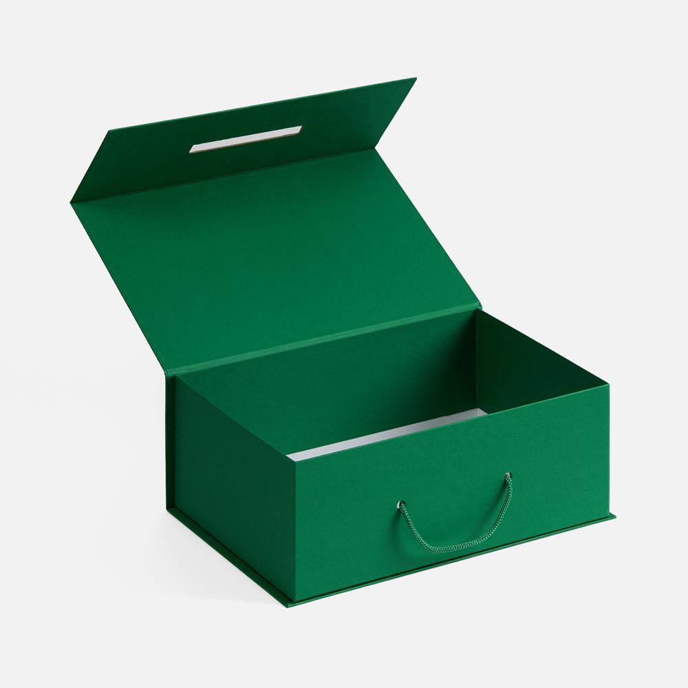 Коробка выполнена из переплетного картона, кашированного дизайнерской бумагой Malmero, с крышкой на магните.Выдерживает вес до 2,5 кг.Длина ручки 35 см.Конструкция коробки предусматривает наличие технологического зазора шириной до 2 мм по линии сопряжения короба и крышки.