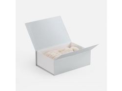 Коробка выполнена из переплетного картона, кашированной гладкой дизайнерской бумагой Мalmero двух цветов.