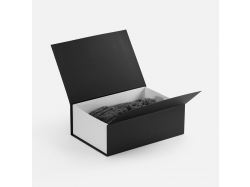 Коробка выполнена из переплетного картона, кашированной гладкой дизайнерской бумагой Мalmero двух цветов.