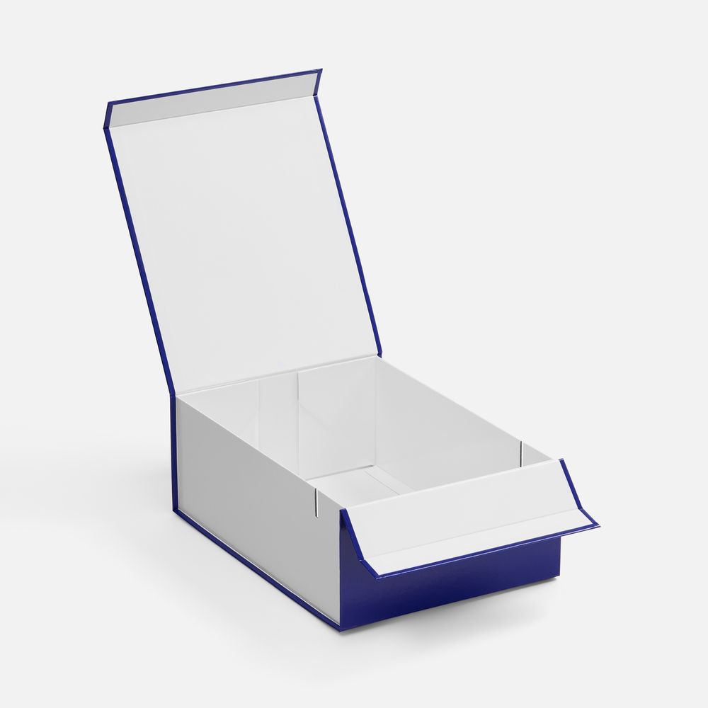 Плотная коробка из переплетного картона толщиной 2 мм с практичной конструкцией на двух створках. Складная система с уже нанесенным двусторонним скотчем позволяет быстро собрать коробку без дополнительных инструментов. Лайнер с полуглянцевым ламинированием устойчив к повреждениям и надолго сохраняет безупречный вид.Поставляется в плоском виде.