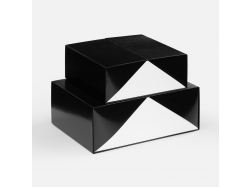 Коробка из переплетного картона 2 мм с оригинальной конструкцией: две симметричные створки открываются, создавая эффектную презентацию содержимого. Складная система на предустановленный двусторонний скотч делает сборку коробки быстрой и интуитивно понятной. Лайнер с полуглянцевым ламинированием устойчив к механическим воздействиям и надолго сохраняет безупречный вид.Поставляется в плоском виде.