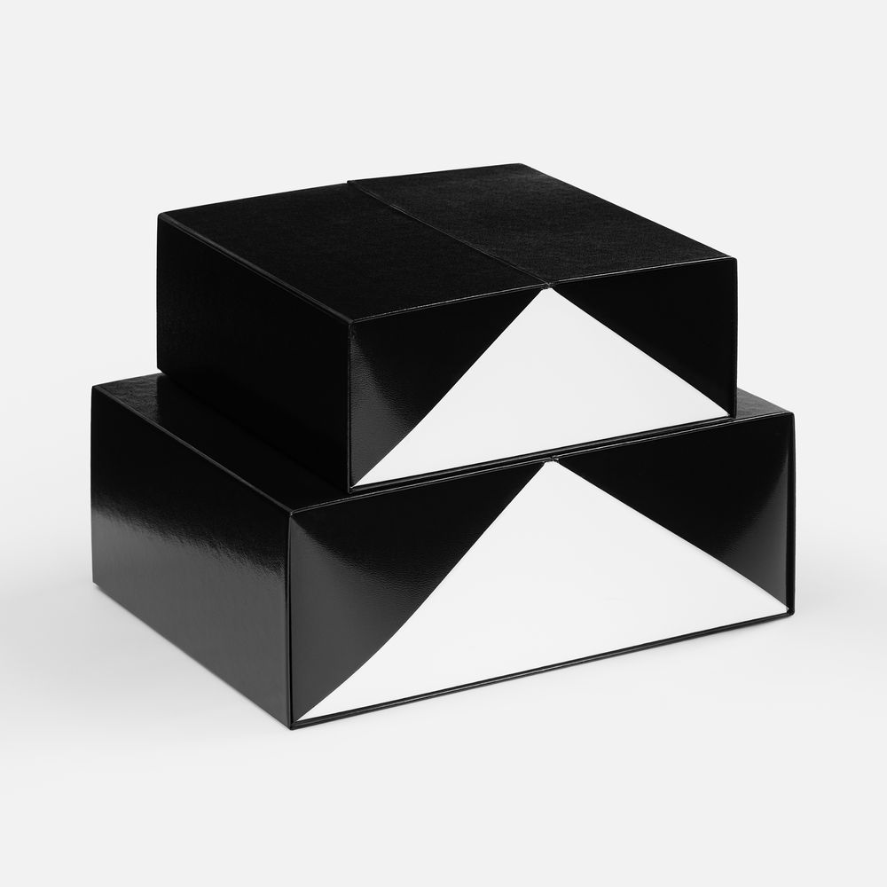 Коробка из переплетного картона 2 мм с оригинальной конструкцией: две симметричные створки открываются, создавая эффектную презентацию содержимого. Складная система на предустановленный двусторонний скотч делает сборку коробки быстрой и интуитивно понятной. Лайнер с полуглянцевым ламинированием устойчив к механическим воздействиям и надолго сохраняет безупречный вид.Поставляется в плоском виде.