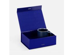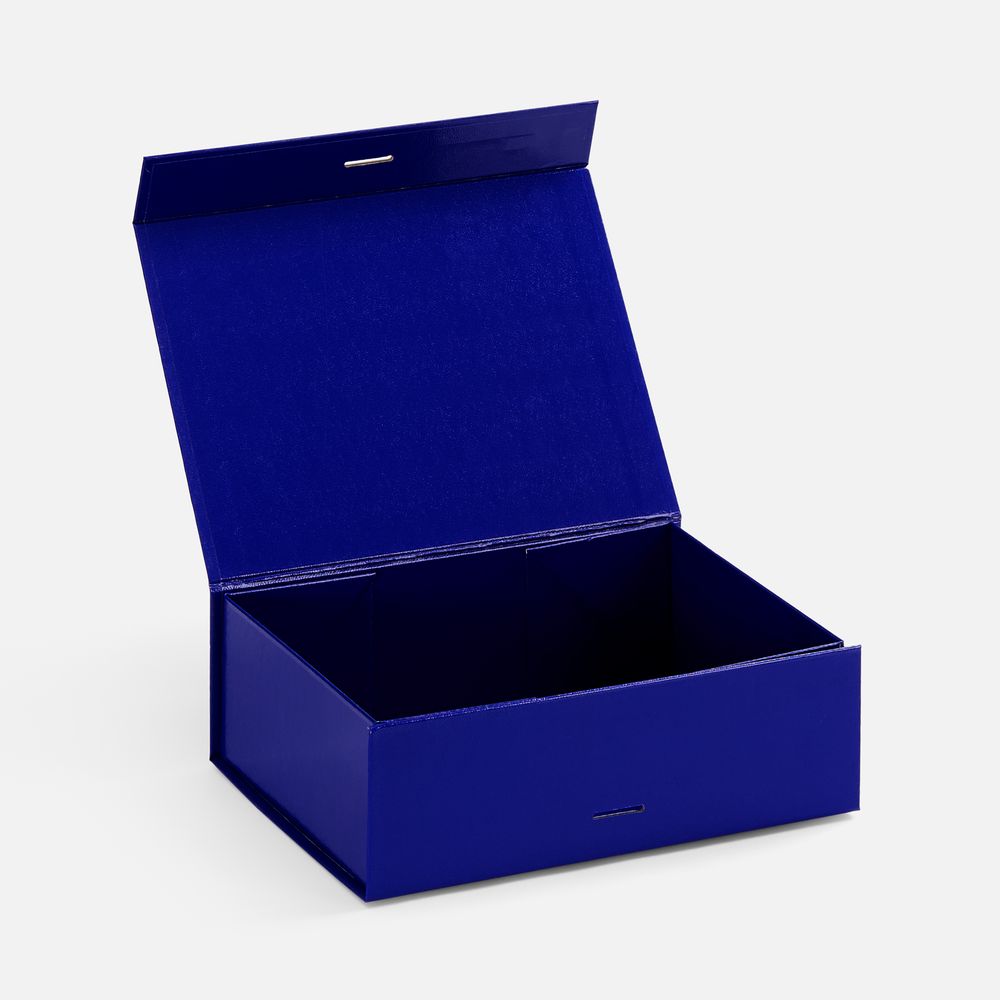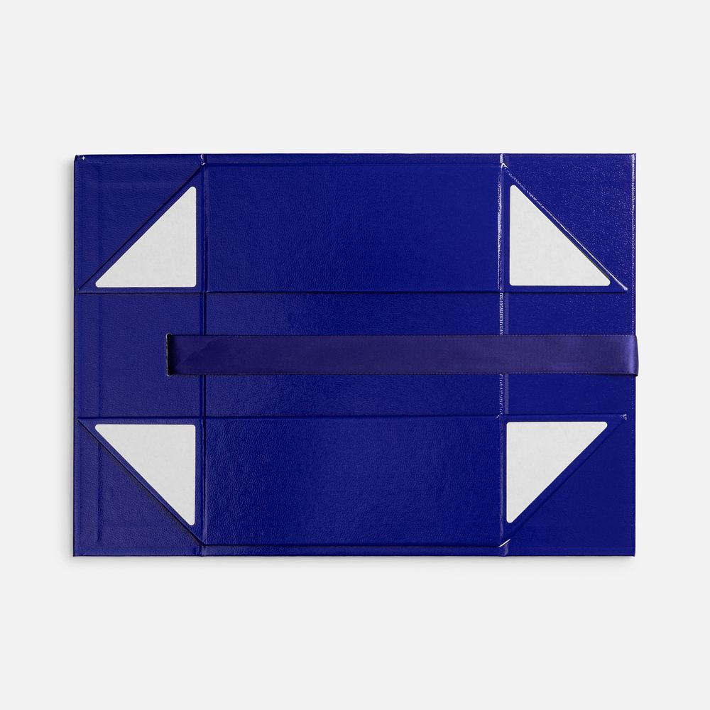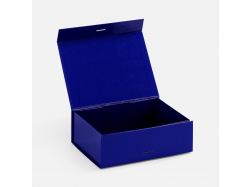 Коробка из переплетного картона с лайнером, ламинированым полуглянцевой текстурной пленкой и устойчивого к царапинам. Крышка на двух магнитах дополнительно фиксируется репсовой лентой.Толщина картона 2 мм. Поставляется в плоском виде.Сборка осуществляется на скотч.Лента поставляется в сложенном виде и имеет складки на местах сгибов.