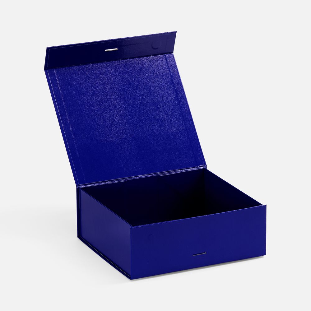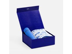 Коробка из переплетного картона с лайнером, ламинированым полуглянцевой текстурной пленкой и устойчивого к царапинам. Крышка на двух магнитах дополнительно фиксируется репсовой лентой.Толщина картона 2 мм.Длина ленты 80 см, ширина ленты 2,5 см. Поставляется в плоском виде.Сборка осуществляется на скотч.Лента поставляется в сложенном виде и имеет складки на местах сгибов.