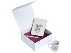 Коробка изготовлена из переплетного картона, кашированного дизайнерской бумагой Fabric Embossing Fine Linen, с крышкой на магните.Конструкция коробки предусматривает наличие технологического зазора шириной до 2 мм по линии сопряжения короба и крышки.