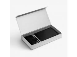 Коробка с крышкой на магните, кашированная дизайнерской бумагой Majestic. Конструкция коробки предусматривает наличие технологического зазора шириной до 2 мм по линии сопряжения короба и крышки.