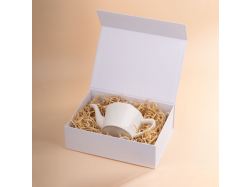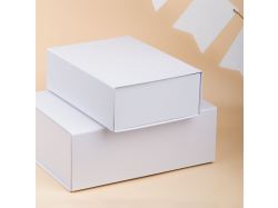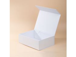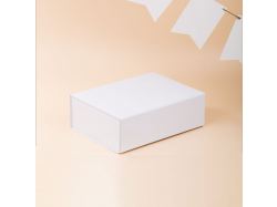 Коробка из переплетного картона, кашированного тисненой тонированной в массе бумагой, с крышкой на магните. Толщина картона 2 мм. Поставляется в плоском виде.Сборка осуществляется на скотч.