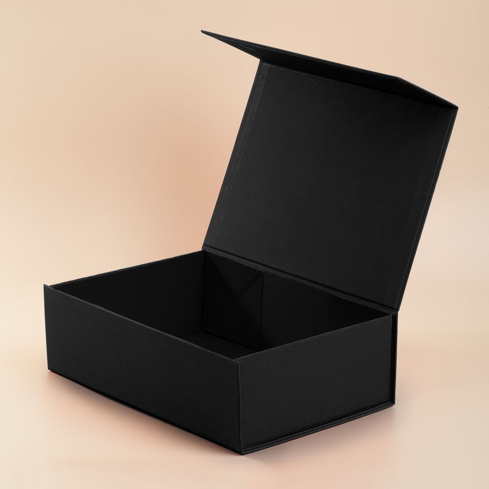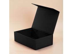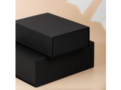 Коробка из переплетного картона, кашированного тисненой тонированной в массе бумагой, с крышкой на магните. Толщина картона 2 мм. Поставляется в плоском виде.Сборка осуществляется на скотч.