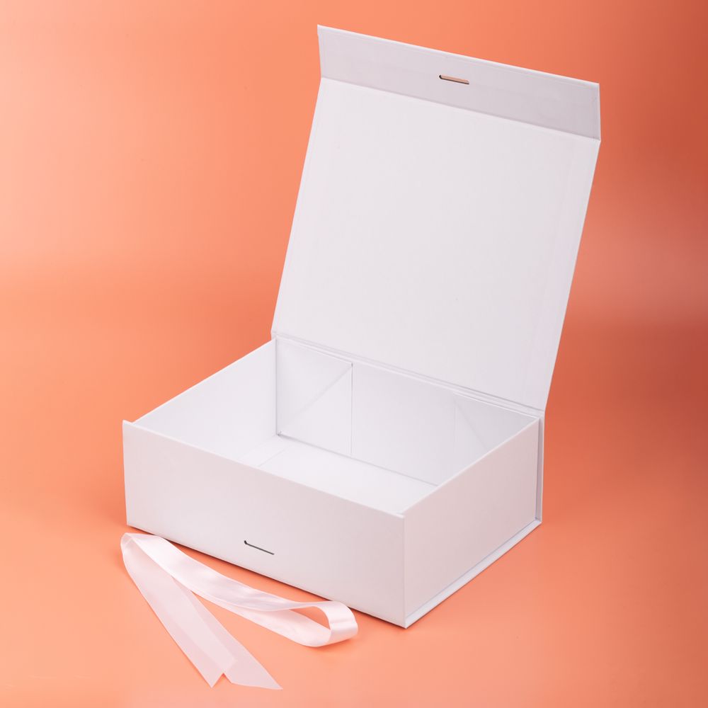 Коробка из переплетного картона, кашированного тонированной в массе крафтовой бумагой. Крышка на двух магнитах дополнительно фиксируется репсовой лентой.Толщина картона 2 мм. Длина ленты 80 см, ширина ленты 2,5 см.Поставляется в плоском виде.Сборка осуществляется на скотч.Лента поставляется в сложенном виде и имеет складки на местах сгибов.