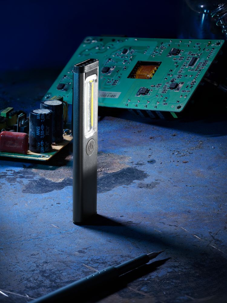 Карманный фонарик-факел, который работает от аккумулятора.Плавная регулировка яркости осуществляется удержанием центральной кнопки при включенном устройстве — это позволяет точно адаптировать освещение под рабочие условия. Магнит в основании фонарика дает возможность зафиксировать фонарик на металлической поверхности и освободить руки для выполнения задач.Световой поток до 320 лм;Клип-держатель;Магнитный держатель в торце;Светодиод COB LED;Три режима работы;Регулировка яркости фонарика в основном режиме работы;Влагозащита IP3;Входные параметры micro USB: 5 В ,1 A;Работает от встроенного литий-ионного (Li-Ion) аккумулятора емкостью 450 мАч;Время работы до 3 часов.