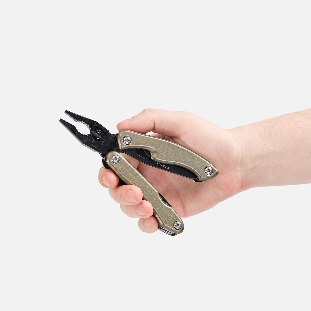 Компактный многофункциональный инструмент изготовлен из высококачественной инструментальной нержавеющей стали.Имеет 12 функций:ПассатижиКусачки и стрипперБольшое лезвие с линейным замкомКонсервный ножКрестовая отверткаОткрывашка для бутылокБольшая плоская отверткаПилаШилоСредняя и малая плоская отверткиНейлоновый чехол в комплекте.Дизайн индивидуальной упаковки в одной партии может отличаться. Варианты упаковки представлены в карточке.
