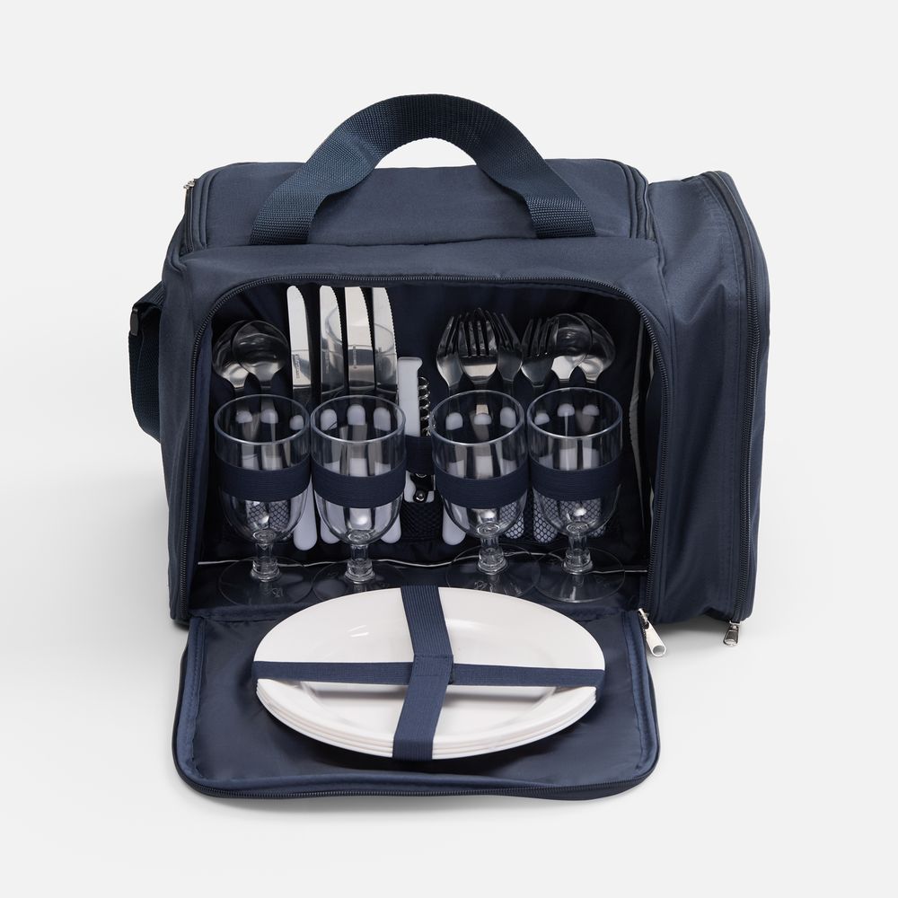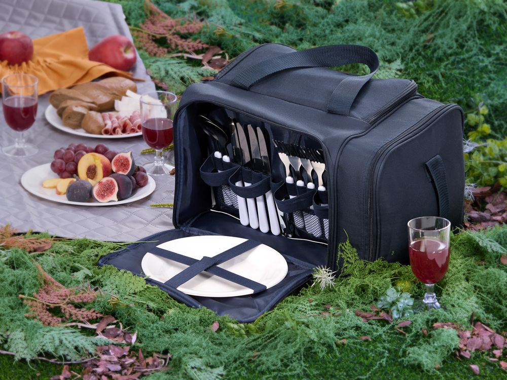 Campello — это продуманный комплект для идеального выездного фуршета на небольшую компанию. Здесь есть необходимые столовые приборы на 4 персоны, а также открывалка и практичные пластиковые бокалы для вина — все, что нужно, чтобы подкрепиться и расслабиться во время чудесного отдыха на природе!Вместительная термосумка в классическом сдержанном стиле позволит до прибытия на место сохранить напитки холодными, а салаты и закуски —свежими.Campello. Создавайте впечатления!В комплекте:4 пластиковых бокала для вина; 4 ножа; 4 вилки;4 ложки; 4 пластиковых тарелки;Открывалка для бутылок.
