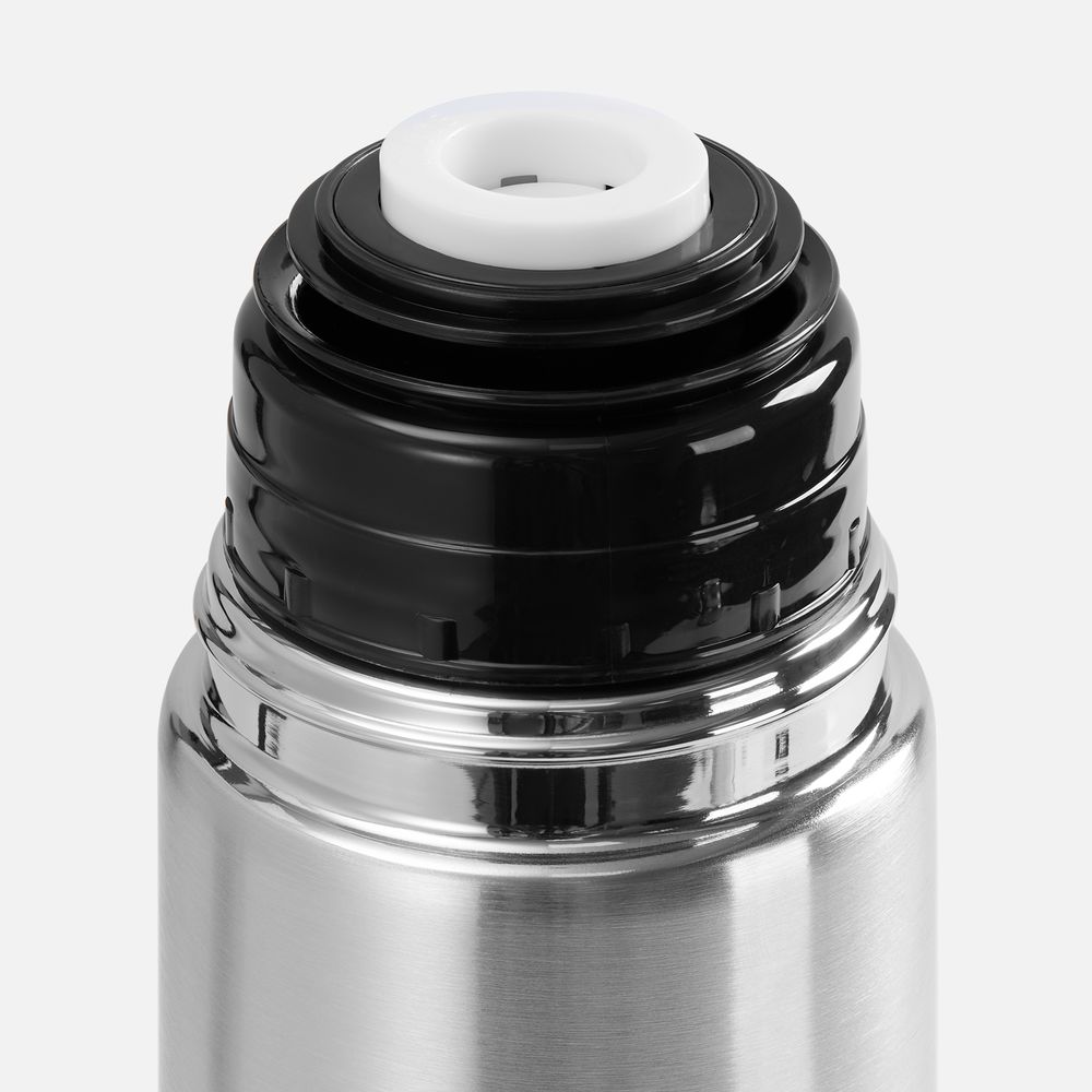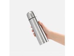 Емкость 500 мл.Двухслойная вакуумная конструкция из нержавеющей стали с завинчивающейся пробкой с клапаном.Изменение температуры напитка внутри закрытого стакана:При температуре окружающей среды +20 °Сначальная температура — 95 °Счерез 3 часов — 70 °Счерез 6 часов — 60 °Счерез 12 часов — 55 °Счерез 24 часа — 45 °СИз-за технологических особенностей процесса круговой гравировки нанесение встык не производится.Крышку можно мыть в посудомоечной машине, корпус рекомендуем мыть вручную.