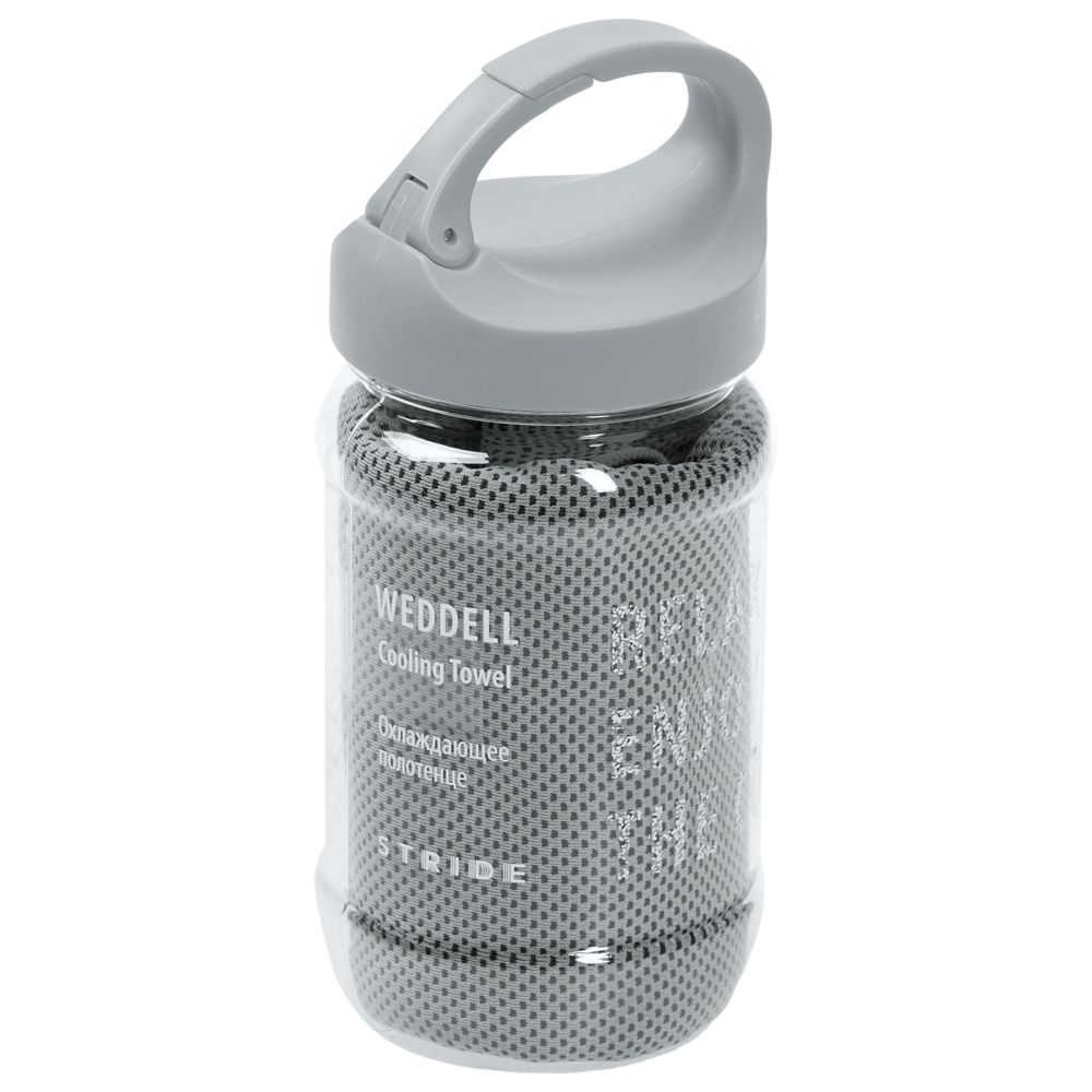 Намочи, встряхни, охладись!Море Уэддела у берегов Антарктиды — одно из самых холодных на Земле. Охлаждающее полотенце Stride не случайно носит это имя. Во время интенсивной тренировки, на пляже или просто в жаркий день — на улице или в душном офисе — Weddell спасет от перегрева и подарит ощущение чистоты и свежести. Поможет не допустить теплового удара или облегчить состояние при высокой температуре, защитит от обезвоживания.Полотенце поглощает тепло и регулирует температуру благодаря особенной структуре ткани из гидрофобных волокон с технологией трехмерного объемного плетения. Они ускоренно испаряют влагу, обеспечивая тем самым интенсивное снижение температуры.Полотенце Weddell — прохлада, которая всегда с тобой!Для получения охлаждающего эффекта намочите полотенце, отожмите излишки воды и встряхните. Положите полотенце на шею, лоб или запястье, убедившись, что ткань покрывает кожу. Влага, испаряясь из полотенца, оказывает охлаждающее воздействие на кожу, обеспечивая мгновенное облегчение.При хранении в бутылке полотенце сохранит охлаждающий эффект в течение нескольких часов. Благодаря крышке-карабину ее удобно прицепить на рюкзак или сумку.Бутылка не герметична. Не переворачивайте и не кладите бутылку на бок, если внутри вода.
