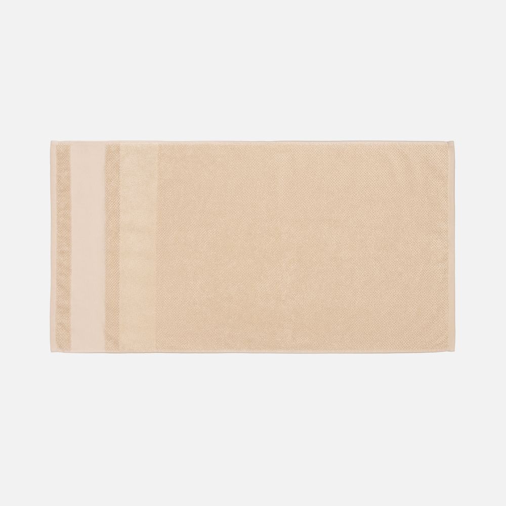 Махровое полотенце Molan — настоящее облако нежности, мягкое и пушистое. Оно станет стильным акцентом в любой ванной комнате. Пышная рельефная структура создает эффект роскошного спа-ухода и быстро впитывает влагу благодаря расположенным пучками петлям, а изящная полоса из стриженных петель с эффектом велюра добавляет ему мягкости и элегантности. Практичный гладкий бордюр станет идеальным холстом для нанесения символики и позволит создать уникальный персональный подарок.Molan. Легкое прикосновение.