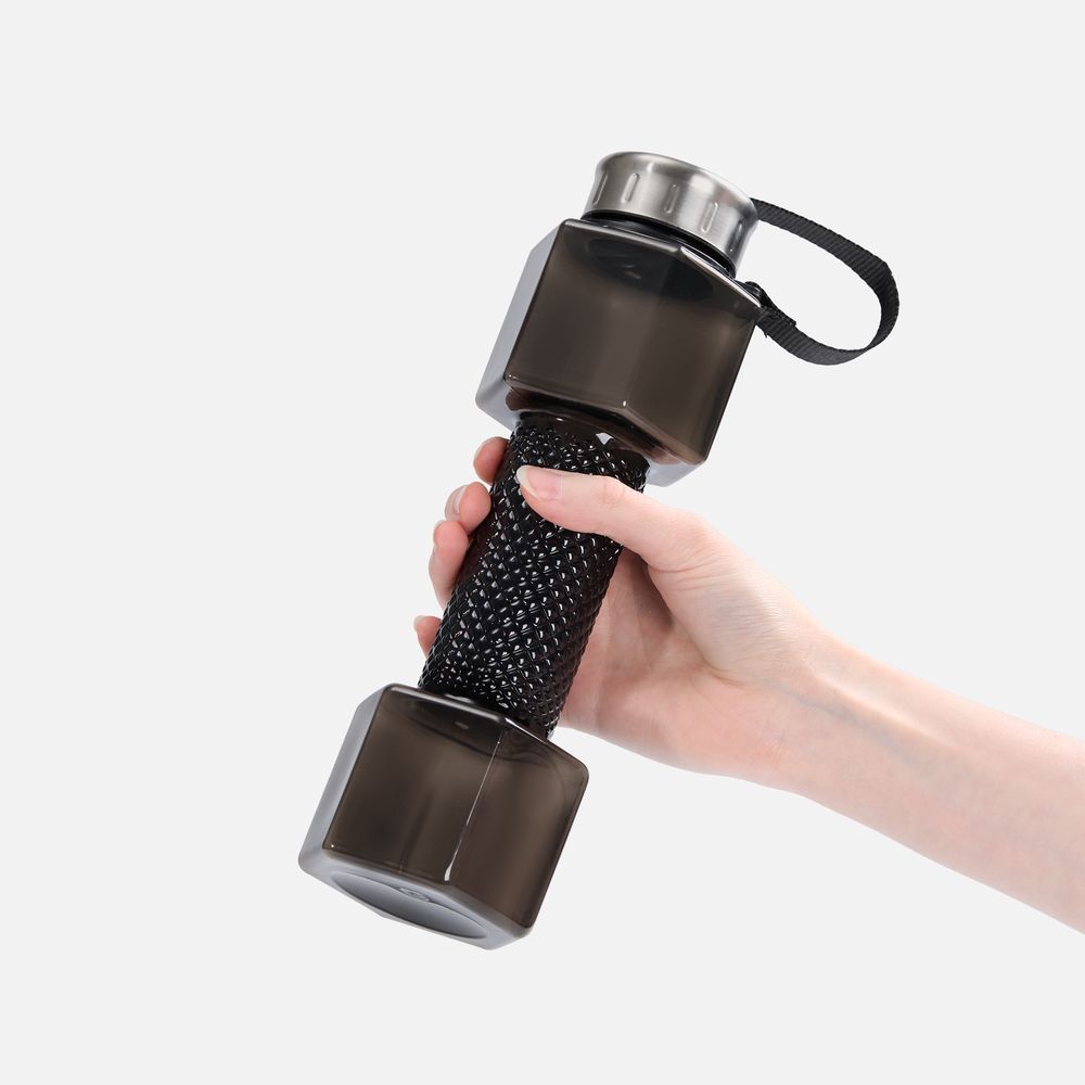 Стильная и функциональная бутылка Hantelis — превосходный выбор для спортсменов и всех, кто придерживается активного образа жизни. Благодаря прочному корпусу и эстетичному дизайну она отлично подходит как для интенсивных тренировок в зале, так и для легких занятий на свежем воздухе. С ней легко поддерживать водный баланс в течение всего дня. Главная особенность модели — уникальный дизайн в виде гантели. Наполненная водой бутылка превращается в полноценный спортивный снаряд, позволяя проводить легкую разминку или полноценную тренировку в любом месте и в любое время!Узкая средняя часть обеспечивает удобный и надежный хват. Крышка с уплотнительным кольцом надежно защищает от протекания. Прочный ремешок фиксирует крышку, не давая ей потеряться. Полупрозрачный корпус выполнен из качественного пищевого пластика, который полностью безопасен для здоровья.Объем 700 млПодходит для напитков с температурой до 40 °CШирокое питьевое отверстие с отвинчивающейся крышкойРемешок для крепления крышкиНе мыть с помощью жестких губок и абразивных моющих веществНе мыть в посудомоечной машинеУпакована в индивидуальный пакет.