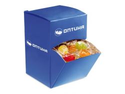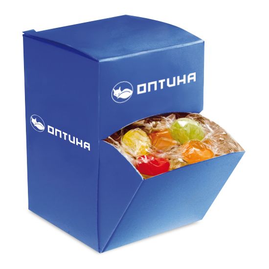 Хорошее настроение всей компании обеспечено, если на столе стоит коробочка с леденцами. Когда же она опустеет, ее можно использовать как диспенсер для скрепок, листочков для записей и прочих нужных мелочей.В стоимость изделия входит полноцветная печать и ламинация на коробке.Леденцы ассорти, 45 шт. по 1,6 г. Каждый леденец упакован в прозрачную пленку.Состав: сахар, патока крахмальная, кислота лимонная, ароматизатор, идентичный натуральному, пищевой краситель. Пищевая ценность на 100г: углеводы — 97 г. Энергетическая ценность 378 ккал.Срок хранения 24 месяца при температуре +5 до +25 °C и относительной влажности 75 %.Отправляя запрос, укажите в поле «Примечание» формы заказа следующие данные:Варианты наполнения: ассорти (вкусы по запросу). Ламинация коробки: матовая или глянцевая.Приложите к заказу оригинал-макет, выполненный в конструкторе.