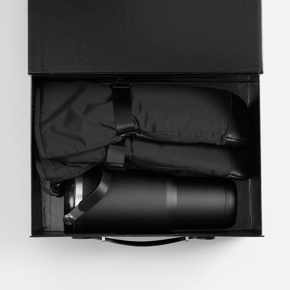 В качестве брендированного корпоративного подарка, который можно использовать в течение всего года, мы предложили набор из рюкзака, фонарика, термокружки и беспроводного зарядного устройства. Эти сувениры с логотипом отражают сферу деятельности группы компаний и будут полезны всем, кто ведет активную бизнес-деятельность.