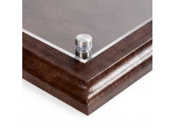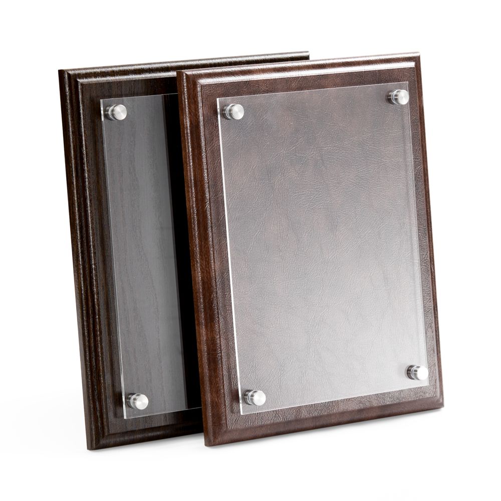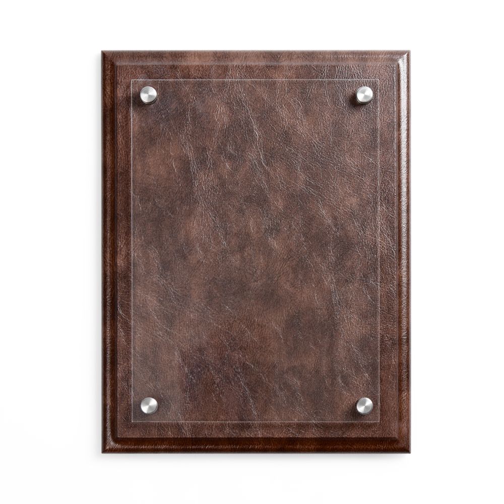 Классическая плакетка с имитирующей кожаную текстуру основой и акриловой вставкой — универсальный инструмент, чтобы рассказать о достижениях команды.Шильд из акрила крепится к основе с помощью металлических болтов.Поставляется без упаковки.