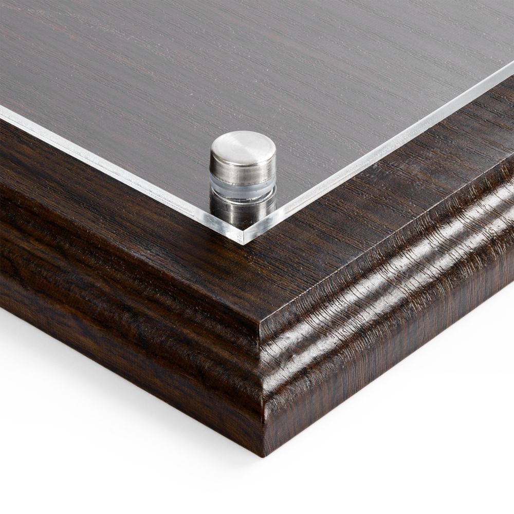 Классическая плакетка с деревянной основой под черное дерево и акриловой вставкой — универсальный инструмент, чтобы рассказать об успехах команды.Шильд из акрила крепится к основе с помощью металлических болтов.Поставляется без упаковки.