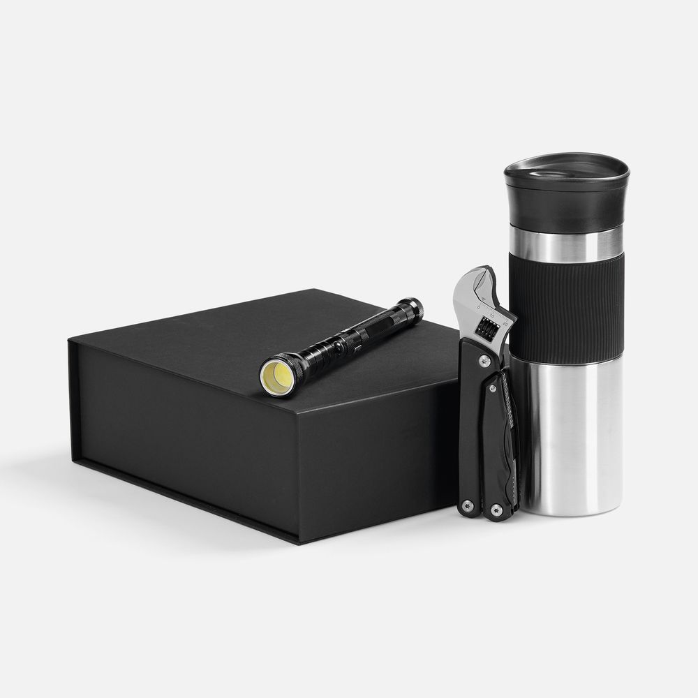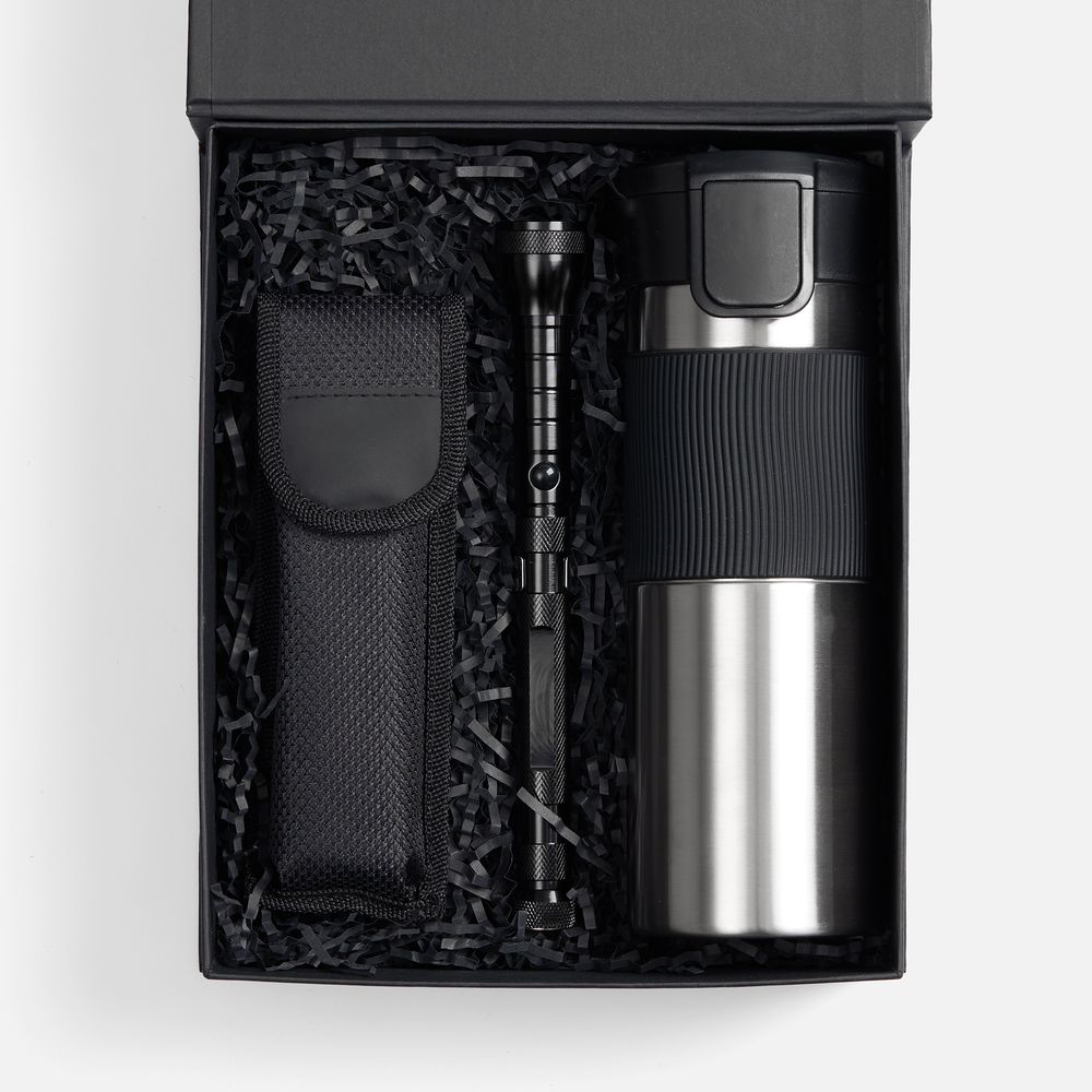 Многофункциональный набор, позволяющий справиться с широким спектром задач. Компактный мультитул, гибкий фонарь и большой герметичный термостакан — все, что нужно для ремонта, строительства или работы в гараже. Емкость термостакана 450 мл.